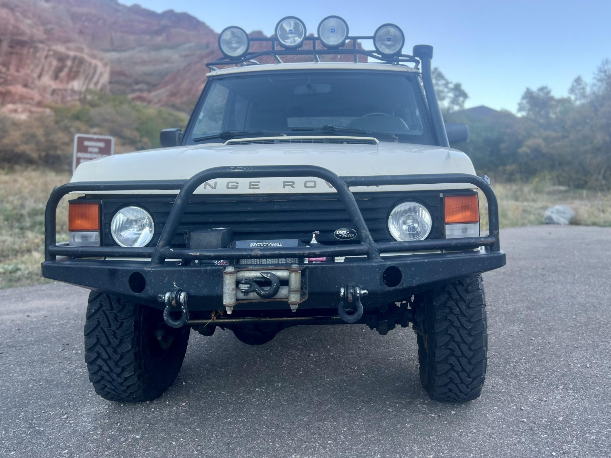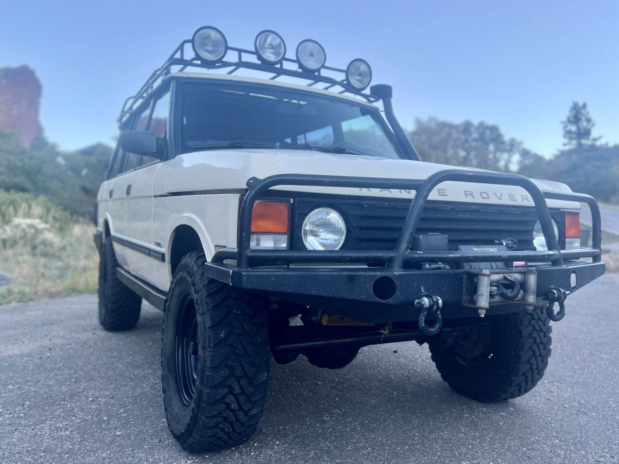 Black 16″ steel wheels are mounted with 265/75 Toyo Open Country M/T tires. The factory air suspension has been replaced with a lifted coil spring setup with Bilstein shock absorbers. Braking is handled by antilock discs at each corner.