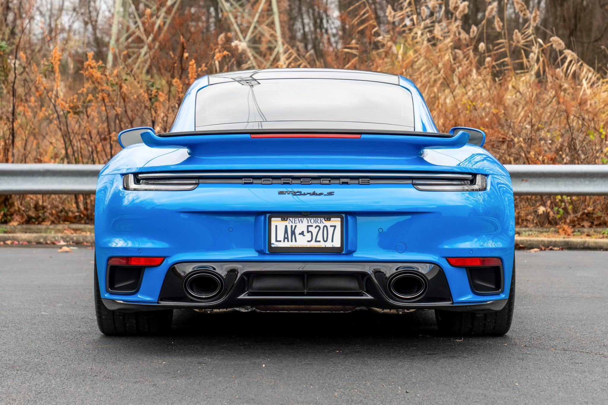 Center-locking 20″ and 21″ Turbo S alloy wheels are mounted with Goodyear Eagle F1 tires. Stopping power is provided by Porsche Ceramic Composite Brakes (PCCB) with yellow-finished multi-piston calipers. The car is equipped with a front-axle lift system, PASM sport suspension, and rear-axle steering. A brake fluid flush was performed in March 2024.