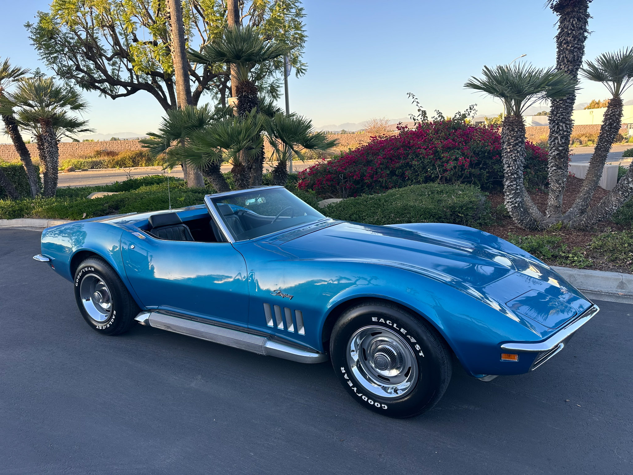 The 15″ Rally wheels wear chrome trim rings and center caps and are mounted with 225/70 Goodyear Eagle ST tires. The car is equipped with power steering, and braking is handled by power-assisted four-wheel discs.