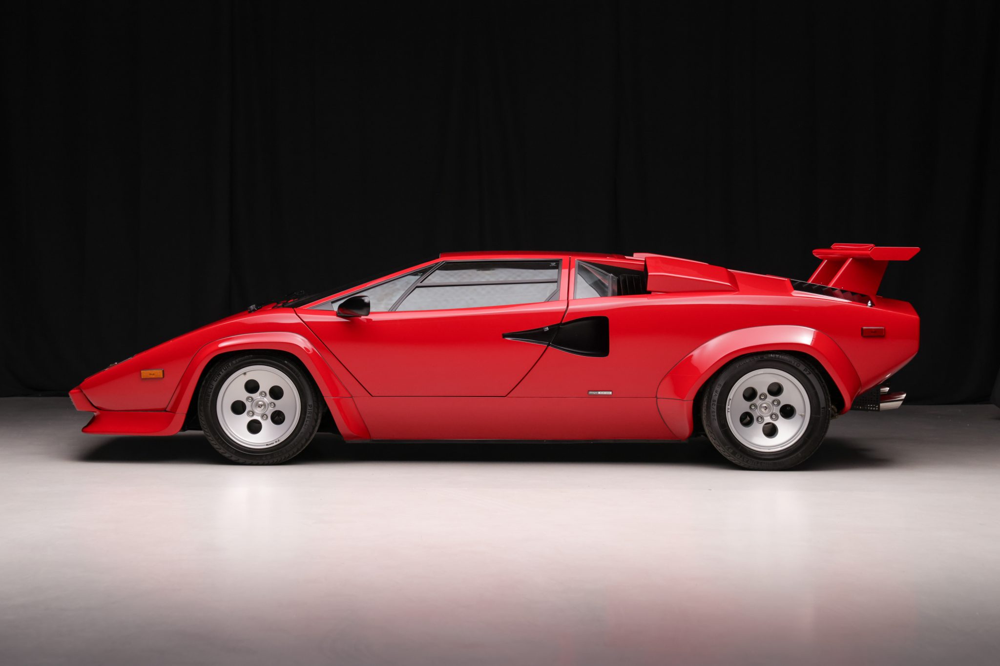 This example was originally finished in Rosso Siviglia and was stripped before it was repainted in its factory color during the 2010s work. Equipment includes European-market bumpers and lighting, a quad-exit exhaust, a V-shaped rear wing, Vitaloni side-view mirrors, and Carello fog lights.