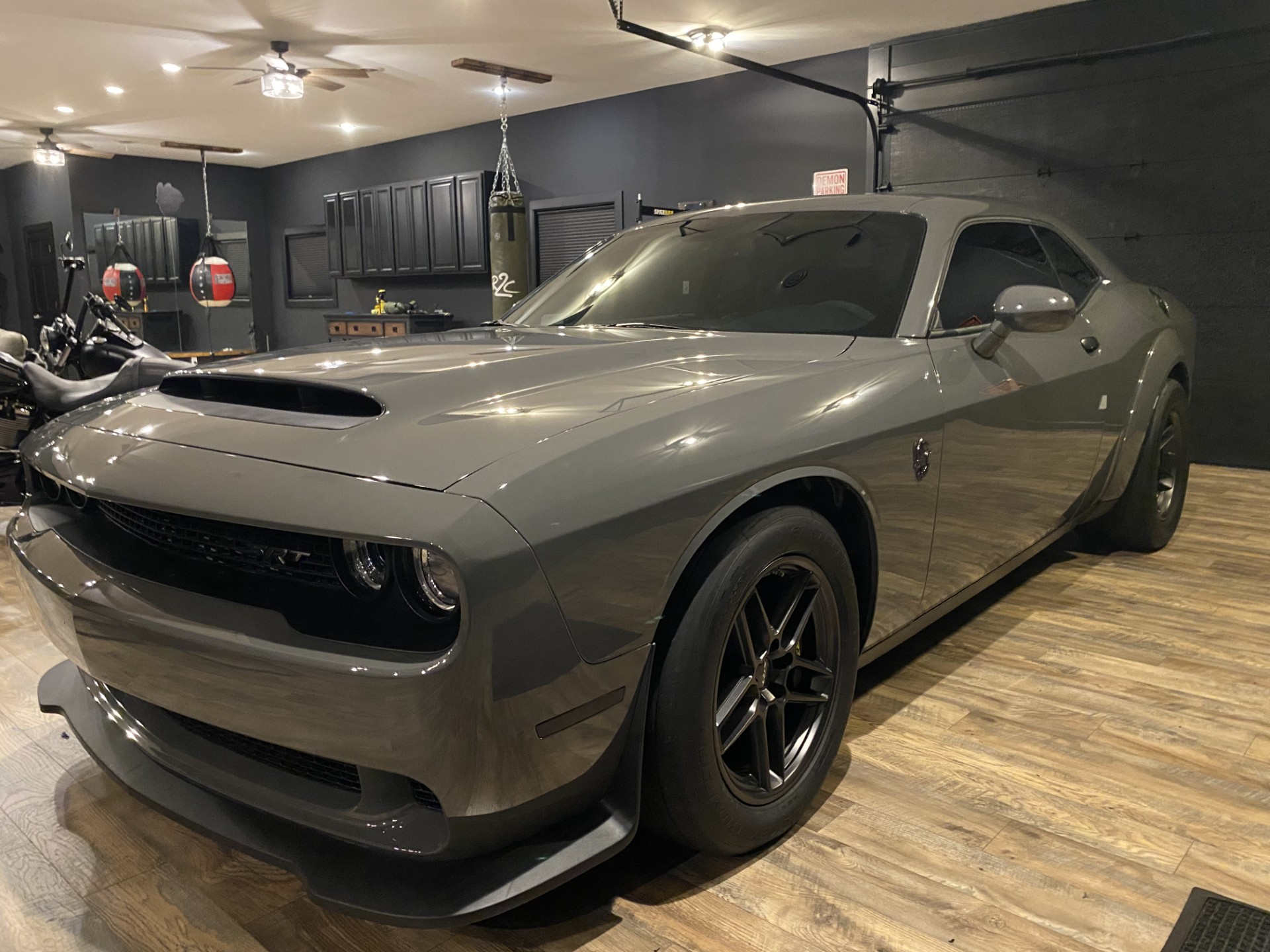 Black 18″ front and 17″ rear forged-aluminum wheels are mounted with Mickey Thompson tires. Stopping power is provided by black four-piston Brembo calipers with yellow SRT lettering over ventilated discs. The Demon 170 is equipped with an edition-specific Drag Mode suspension with adaptive-damping shocks as well as launch control, a line lock, and a revised transbrake.