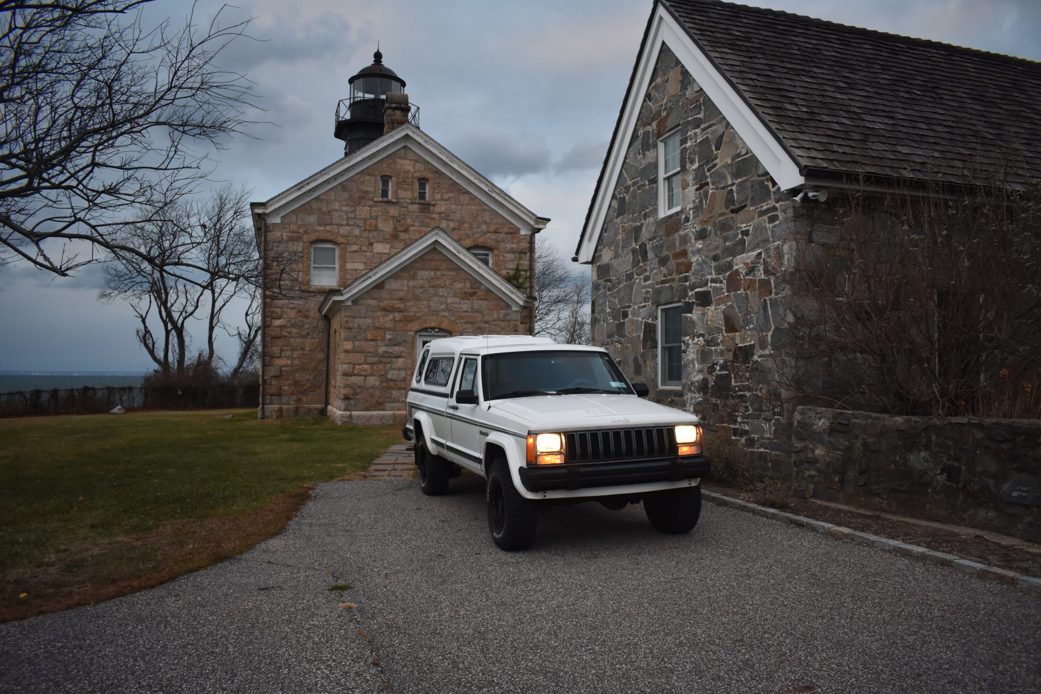 Black 15″ steel wheels are mounted with BFGoodrich Mud-Terrain T/A tires. The truck is equipped with a 2″ suspension lift, power steering, and front disc brakes.