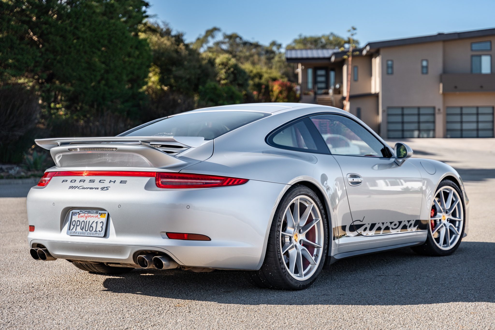 The 20″ Carrera S alloy wheels are mounted with 245/35 front and 305/30 rear Michelin Pilot Sport Cup 2 tires showing 2020 date codes. The seller states that the car rides on KW V3 coilovers, and braking is handled by red-painted Porsche-branded calipers over Girodisc two-piece slotted rotors. The brake pads and rotors were replaced in August 2023.