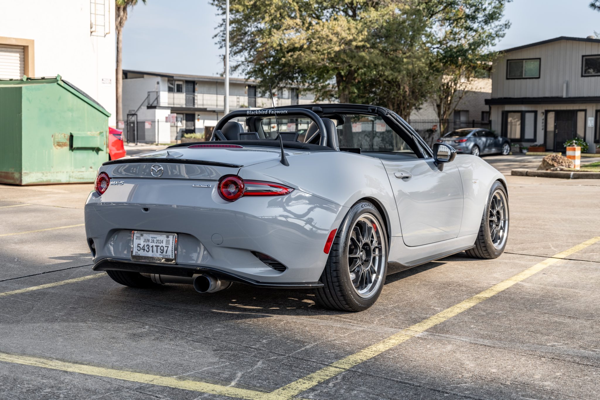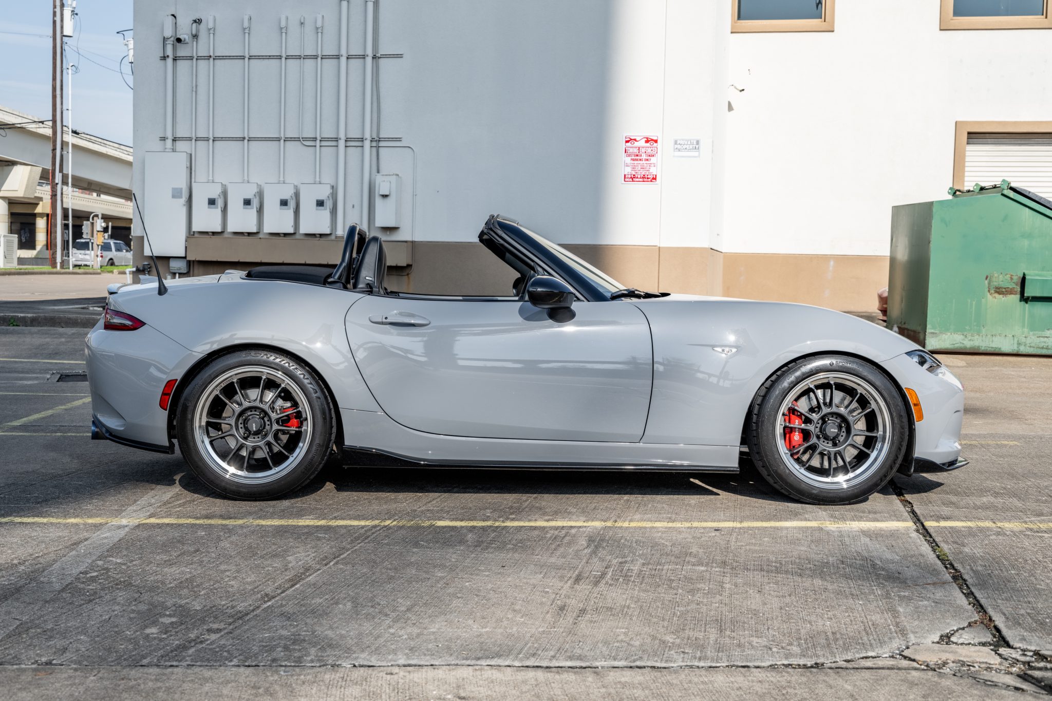 The suspension was modified with Öhlins coilovers following the seller’s acquisition, and additional revisions fitted at that time included ARP wheel studs, Mishimoto lug nuts, and 17″ König Hypergram alloy wheels, which are mounted with 225/45 Continental ExtremeContact Sport 02 tires. The car is equipped with four-wheel anti-lock disc brakes with red Brembo calipers and cross-drilled and ventilated rotors up front. The seller states that an aftermarket stabilizer bar and braided stainless-steel brake hoses have been installed.