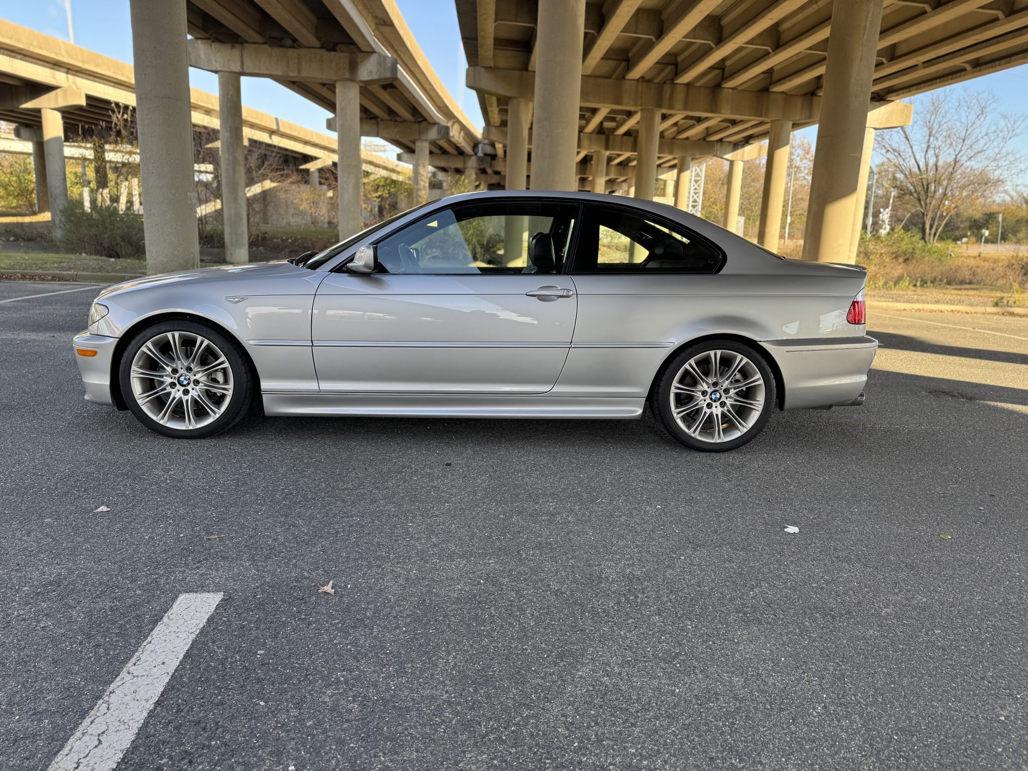 Silver 18″ M Double Spoke wheels are mounted with Michelin Pilot Sport tires, which show date codes from 2014. The ZHP Performance Package added a stiffer sport suspension, revised control arms, and larger anti-roll bars when compared to the standard E46. The car is also equipped with Dynamic Stability Control (DSC). Stainless-steel brake lines and an aftermarket front sway bar have reportedly been fitted, and front control arm bushings were replaced in April 2021.