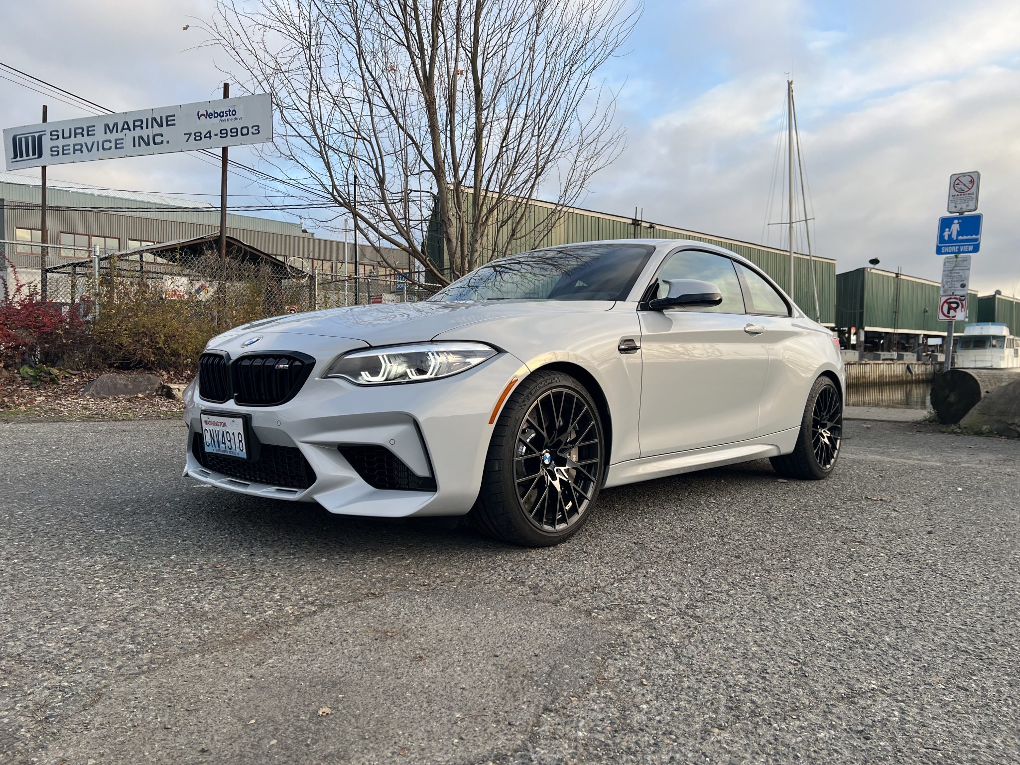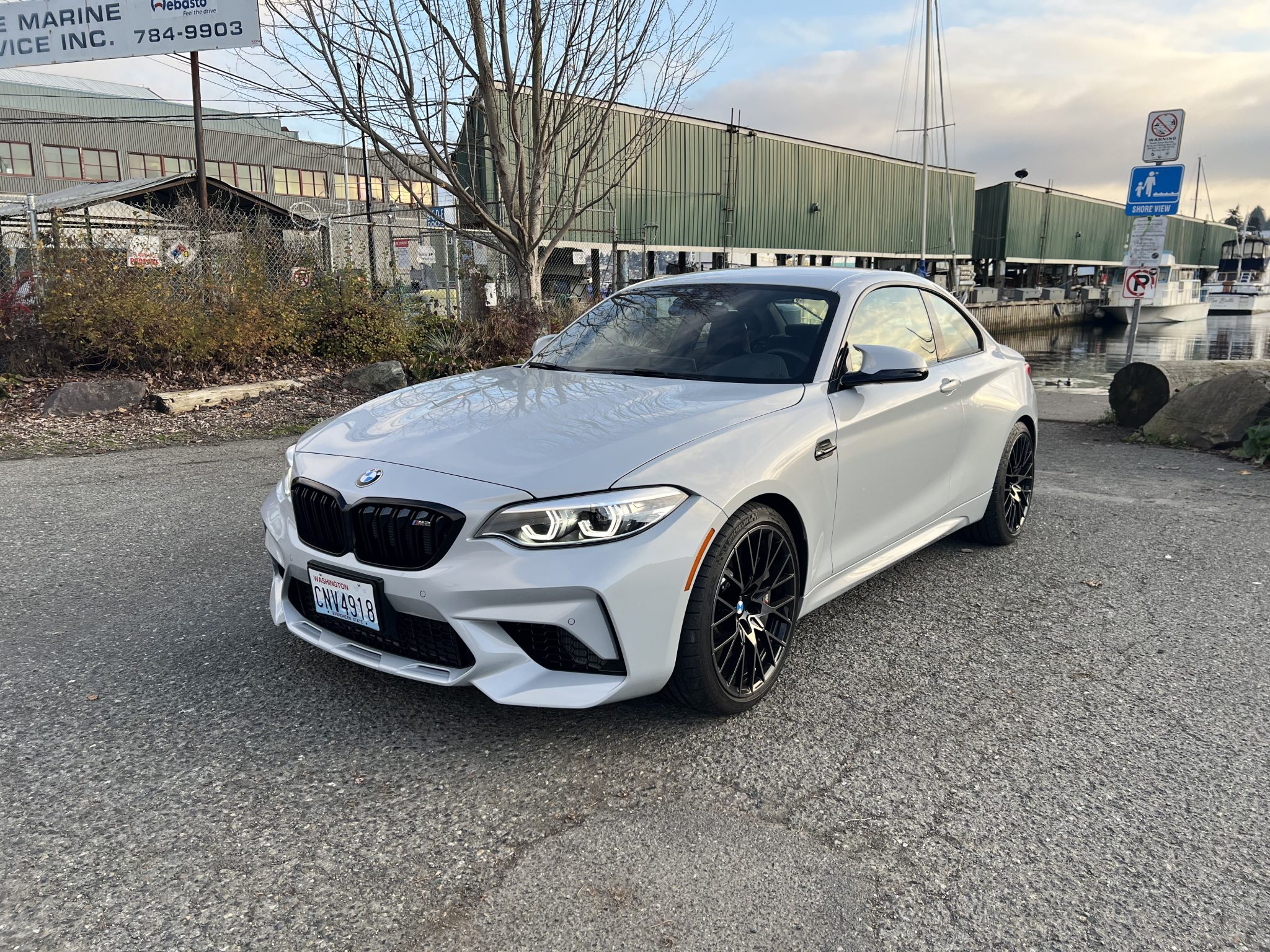 The 19″ Style 788M alloy wheels are mounted with Michelin tires showing 2018 date codes. The car is equipped with an M-specific sport suspension, and braking is handled by M-logo six-piston front and four-piston rear calipers mounted over cross-drilled rotors. The Executive Package added Active Driving Assistant, which included lane-keep assist and pre-collision warning.