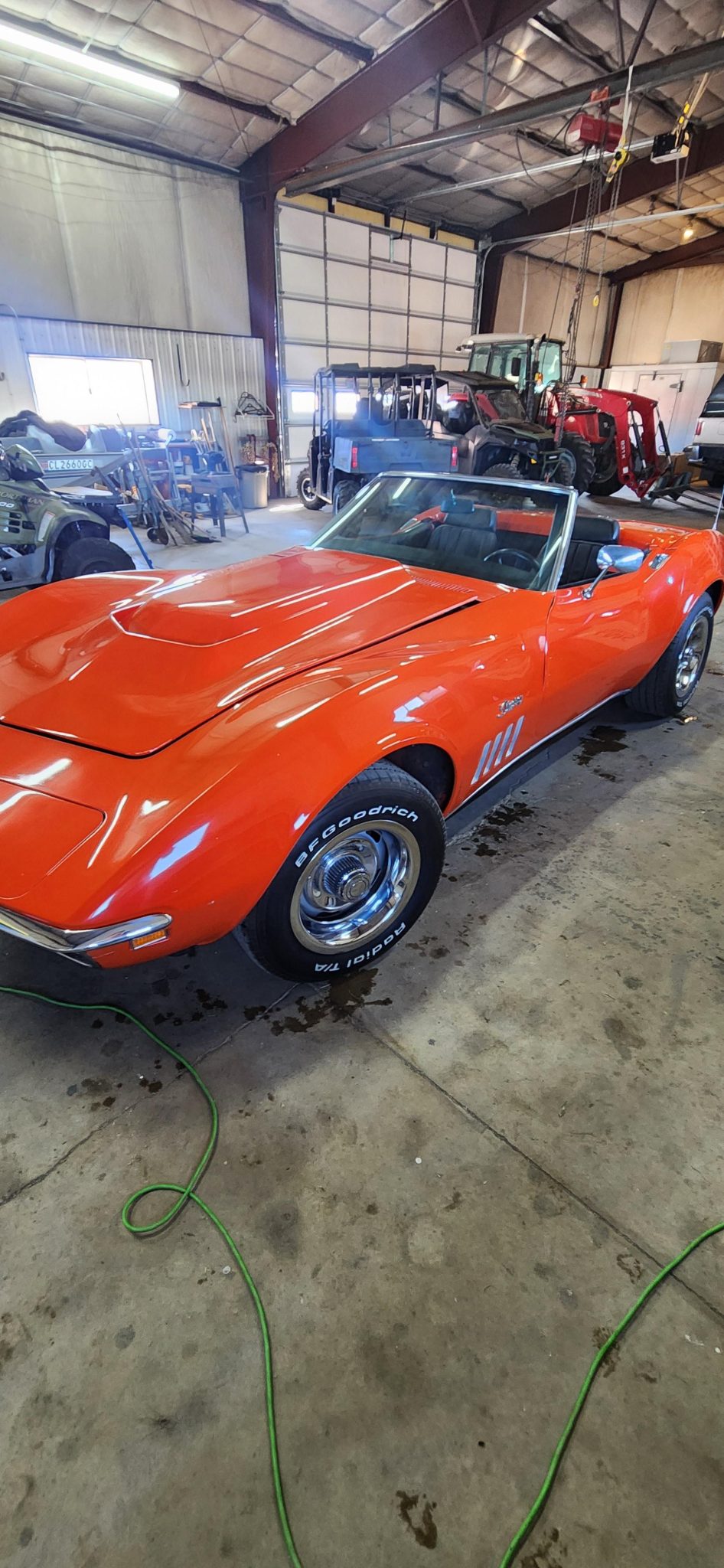 The 15″ Rally wheels wear chrome trim rings and center caps and are mounted with 235/60 BFGoodrich Radial T/A white-letter tires. The car is equipped with power steering, and braking is handled by power-assisted four-wheel discs. The suspension and brakes are said to have been overhauled during the refurbishment.