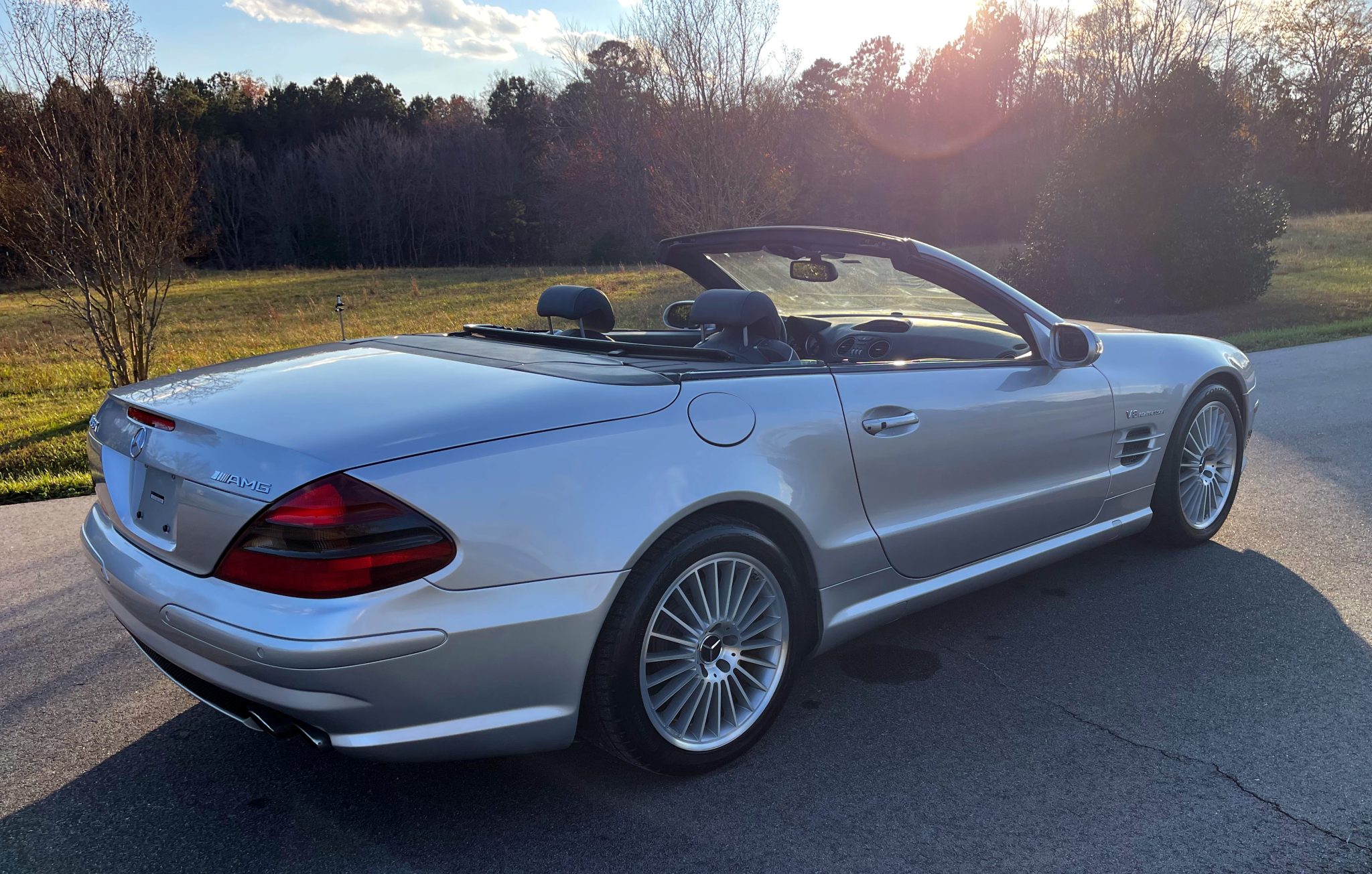 Staggered-width 18″ AMG wheels are wrapped in 255/40 front and 285/35 rear Continental ExtremeContact tires that were installed in 2021. One of the ABC accumulators was replaced in 2022, the brake calipers were painted yellow, and the seller notes that the TPMS system was disabled because of faulty sensors.