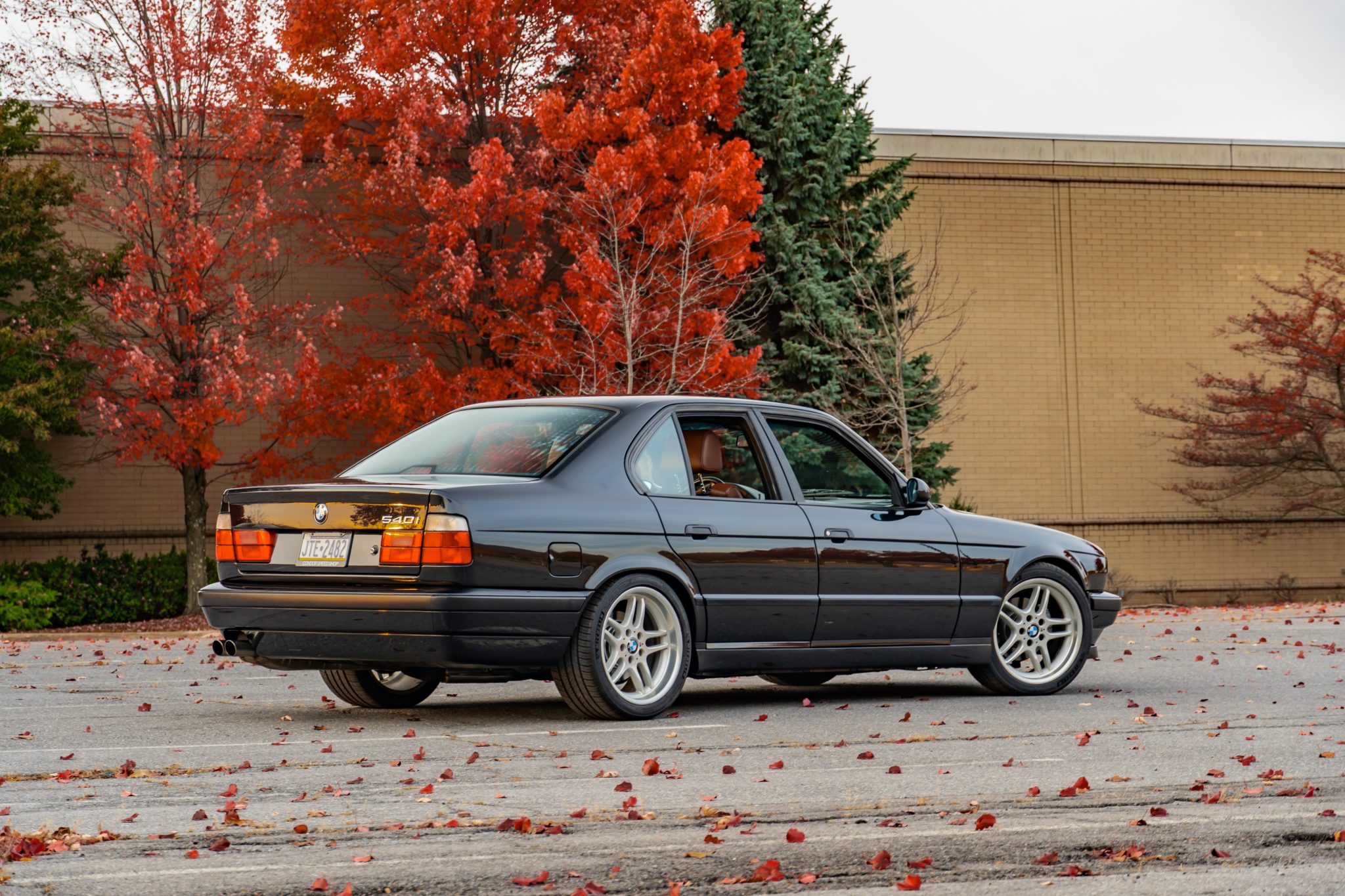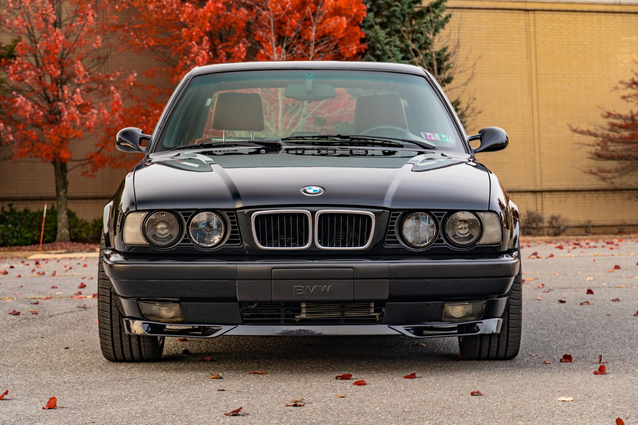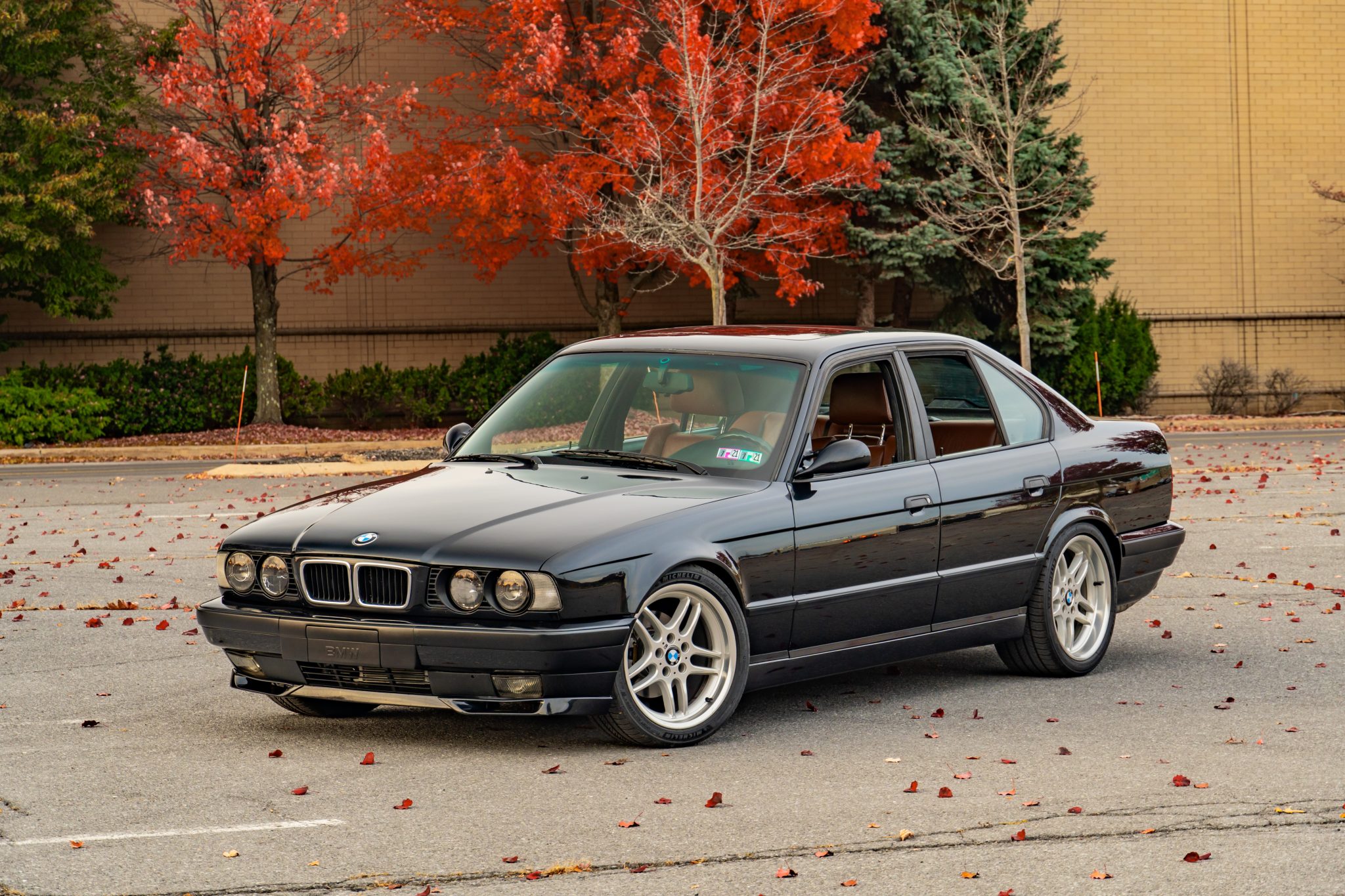 The 18″ Style 37 M Parallel alloy wheels are mounted with 235/40 front and 265/35 rear Michelin Pilot Sport All Season 4 tires. Koni front shocks, Bilstein rear shocks, and H&R lowering springs are said to have been installed under current ownership along with AKG bump steer correction spacers, 12mm front wheel spacers, and an upgraded power steering cooler. Stopping power is from four-wheel ventilated discs. According to the seller, the power steering hoses were replaced in 2022 and the tie rods were replaced in 2023.