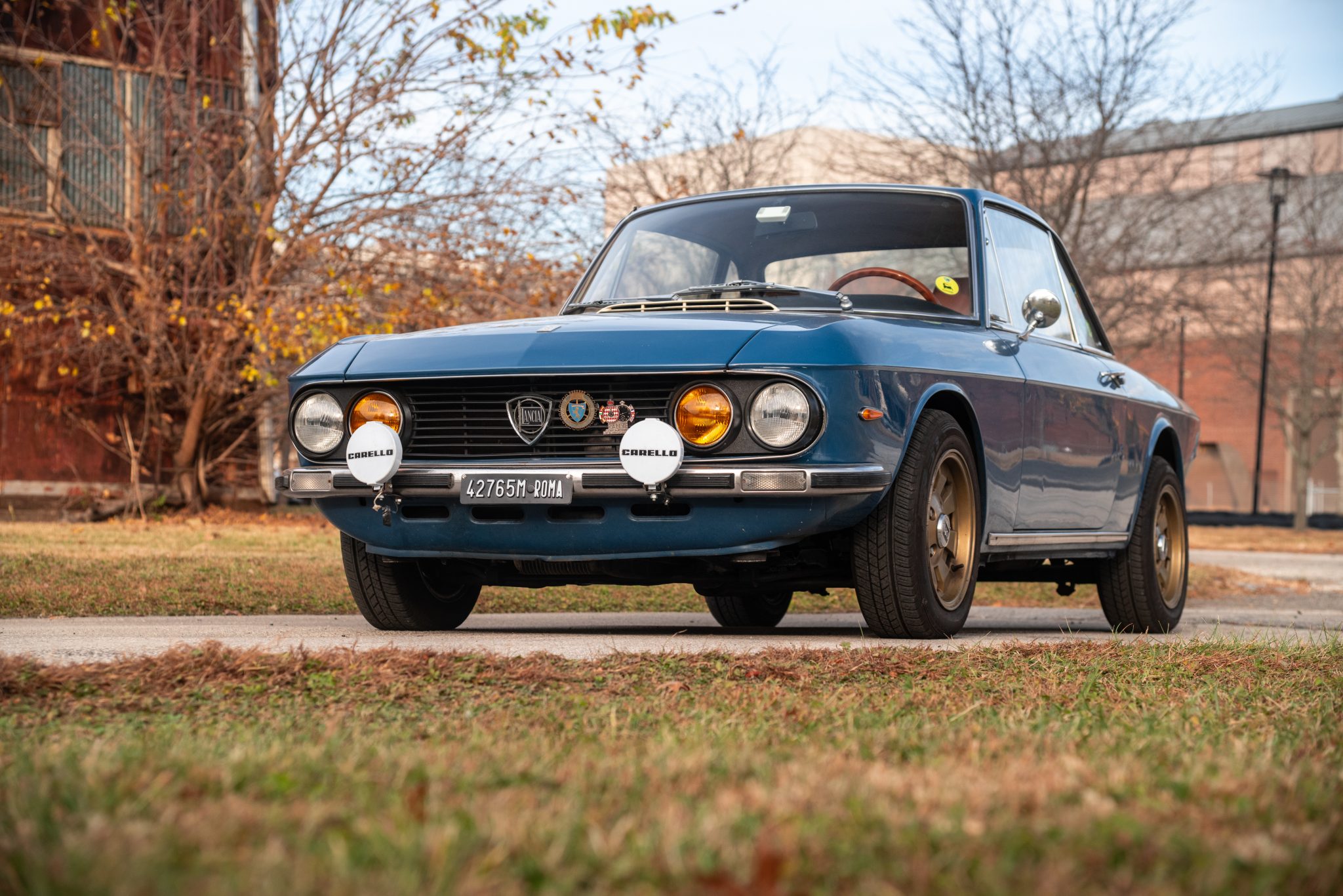 Cromodora 14×6” wheels are mounted with 175/70 Dunlop SP31 tires. Braking is handled by four-wheel discs, and maintenance in 2022 included adjusting the steering box and performing a four-wheel alignment. Discoloration on the wheels is shown up close in the gallery.