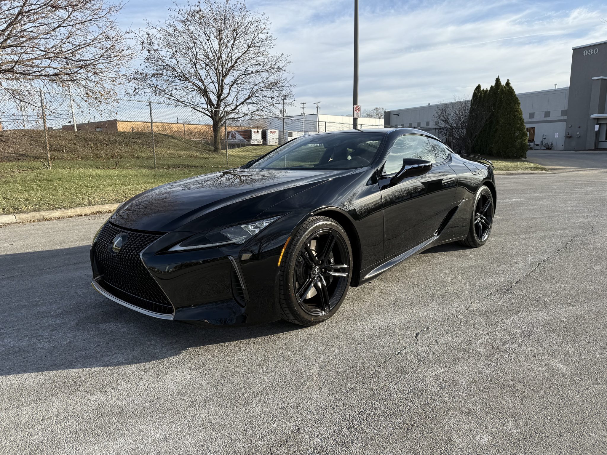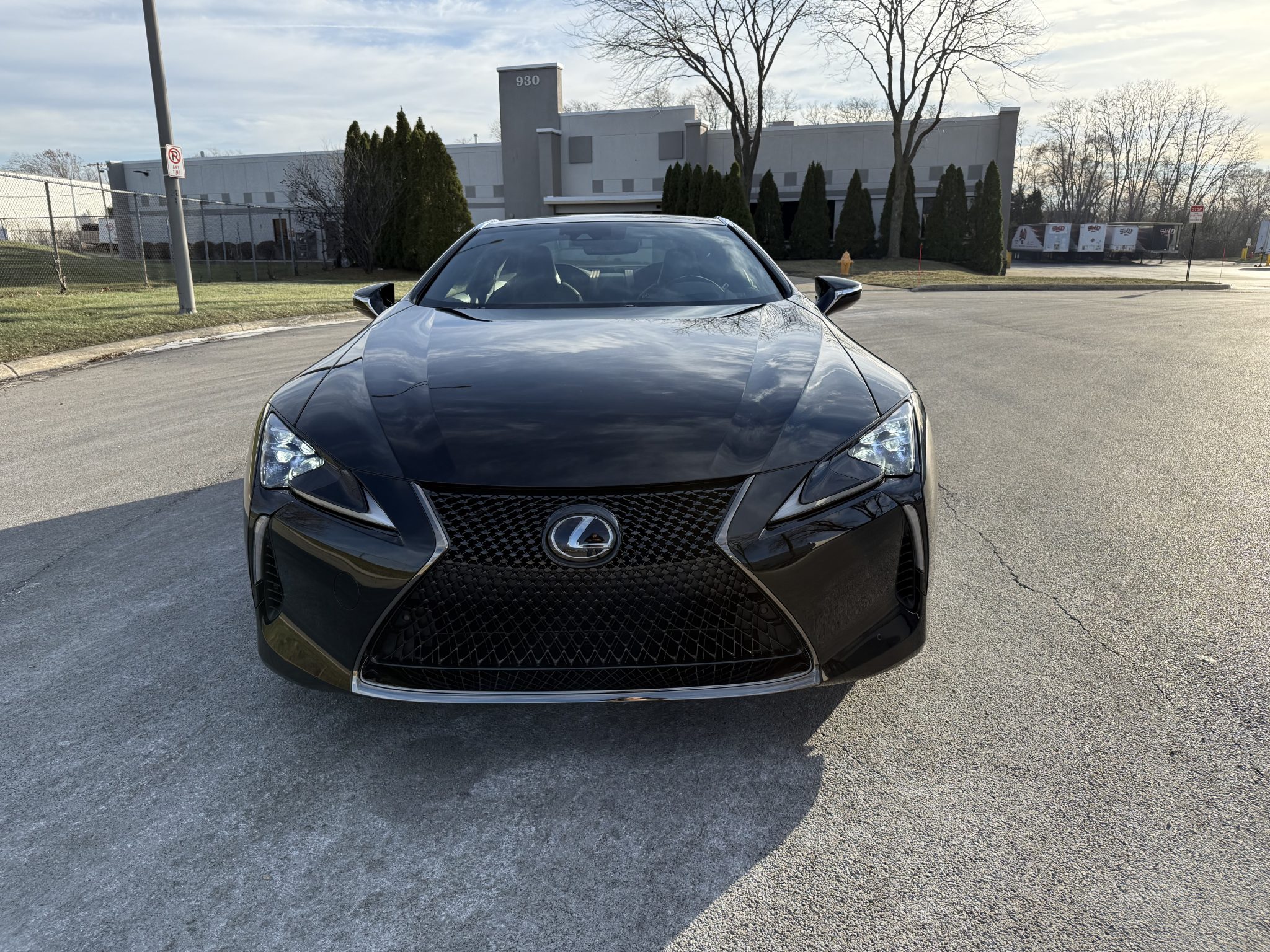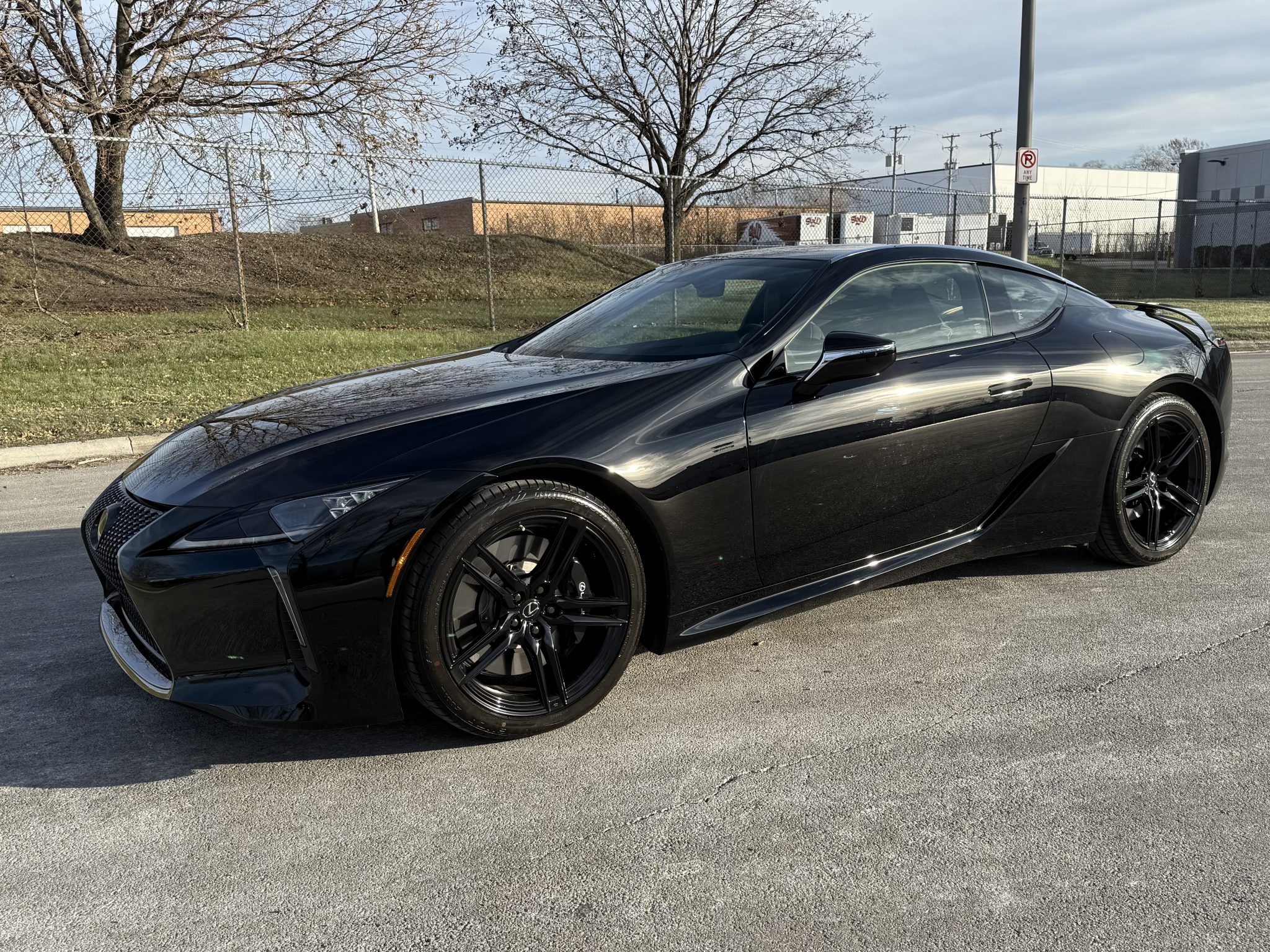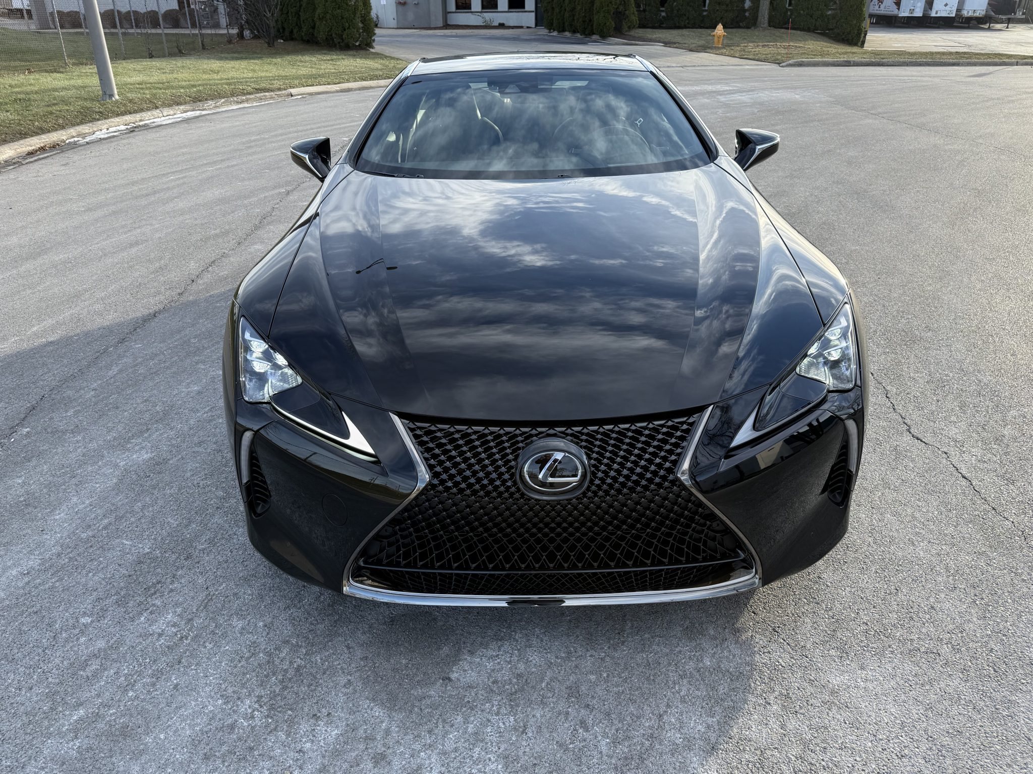 Black 21″ forged alloy wheels are mounted with 245/40 front and 275/35 rear Bridgestone Potenza S001L tires. The car is equipped with a Yamaha performance damper and an Adaptive Variable suspension. Stopping power is provided by four-wheel disc brakes with ventilated rotors and Lexus-branded calipers.