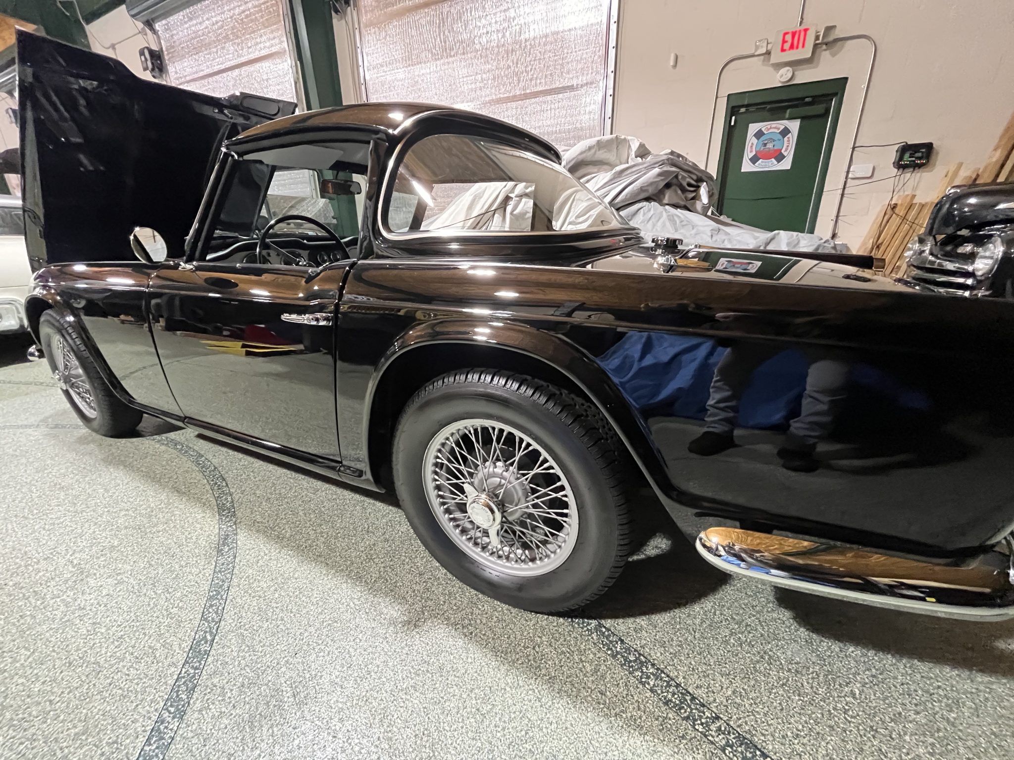 Painted 15″ wire wheels feature chrome knockoffs and wear 165/80 Coker whitewall tires. A matching spare is located beneath the trunk floor. The car is equipped with a factory front sway bar and work completed during the refurbishment included rebuilding the front brake calipers, steering rack, steering shaft, and rear lever shocks as well as replacing the following components: