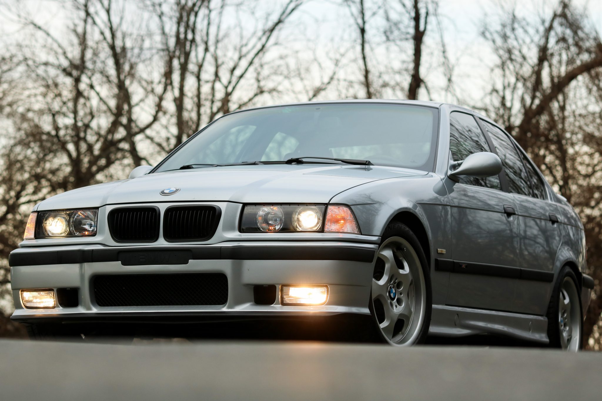 Staggered-width 17″ Style 23 wheels are fitted with Continental ExtremeContact tires. The car has been modified with Bilstein shocks, H&R springs, and cross-drilled brake rotors at all four corners. The trailing arm bushings, control arms, sway bar links, ball joints, and control arm bushings were replaced in February 2022.