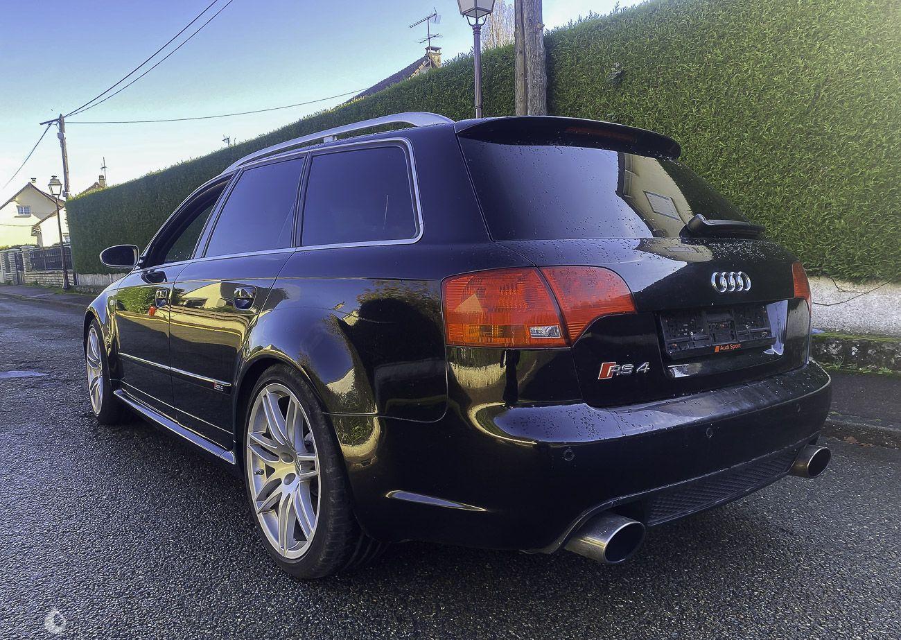 On the outside, the paint in its Black color shows some visible defects in the gallery. The exterior plastics and seals are in good condition, as well as the headlights. The seller indicates that the chassis of this Audi RS4 is sound, pictures of the undercarriage are available in the gallery.