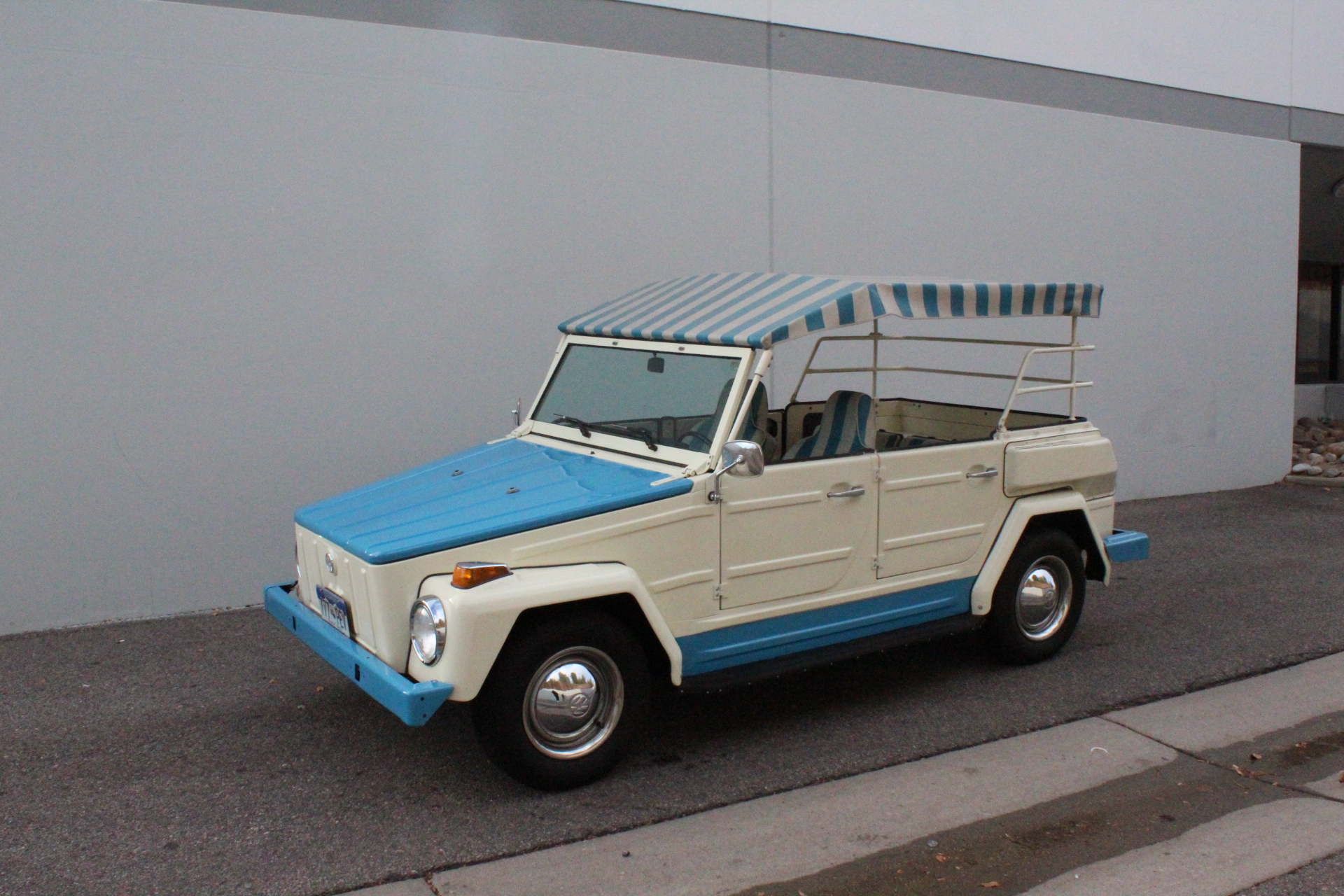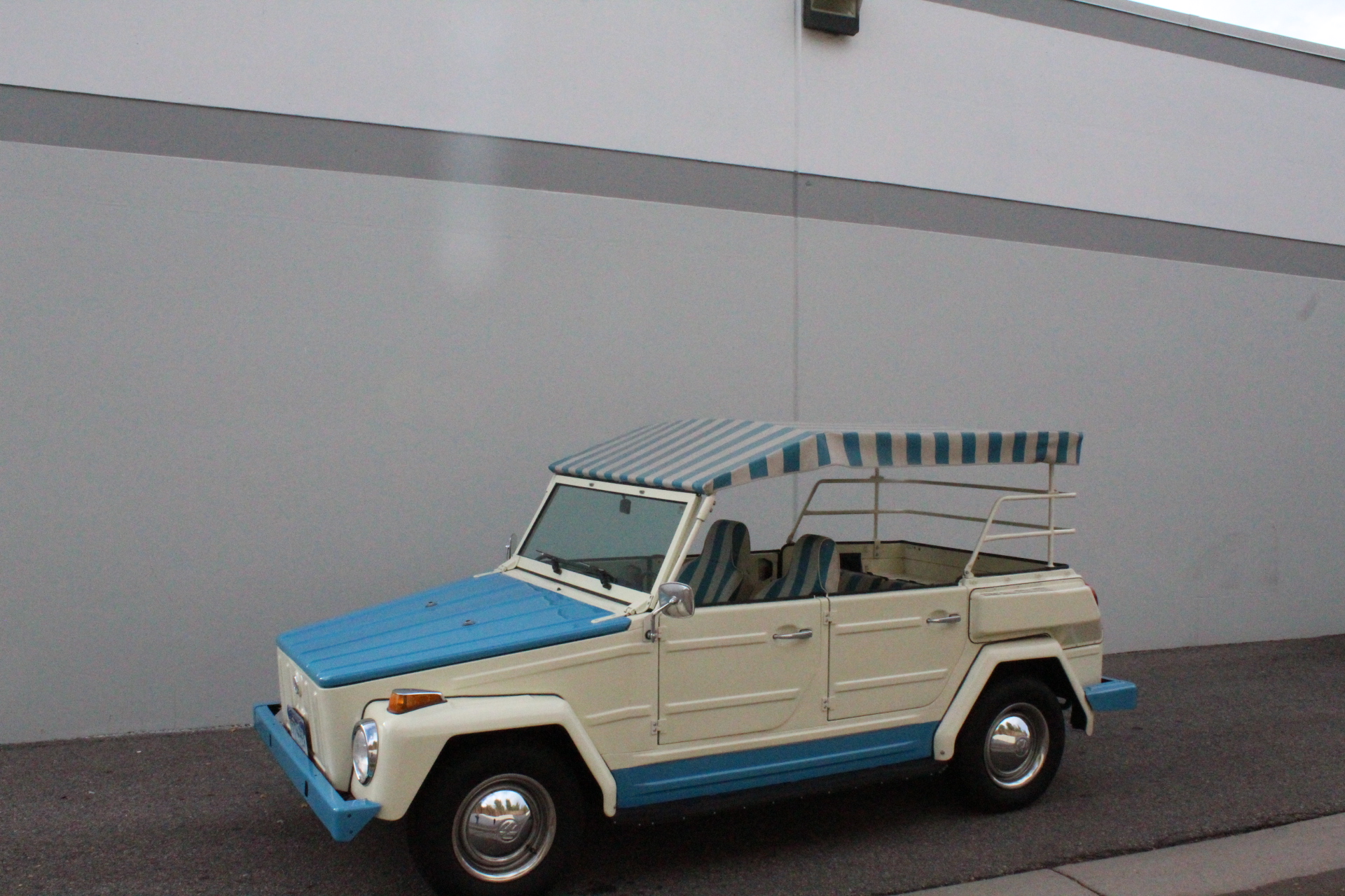 Silver-finished 14″ steel wheels wear bright hubcaps and trim rings and are mounted with all-season tires. The suspension features an aftermarket front sway bar, KYB GR-2 dampers, and polyurethane rear suspension bushings. Stopping power is provided by four-wheel drums.