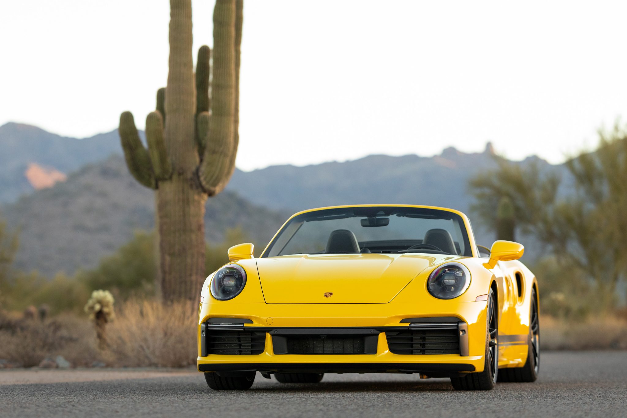 Center-locking 20″ and 21″ Turbo S alloy wheels are mounted with Pirelli P Zero tires. Stopping power is provided by Porsche Ceramic Composite Brakes (PCCB) with yellow-finished multi-piston calipers. The car is equipped with PASM sport suspension, rear-axle steering, Power Steering Plus, and a front-axle lift system.
