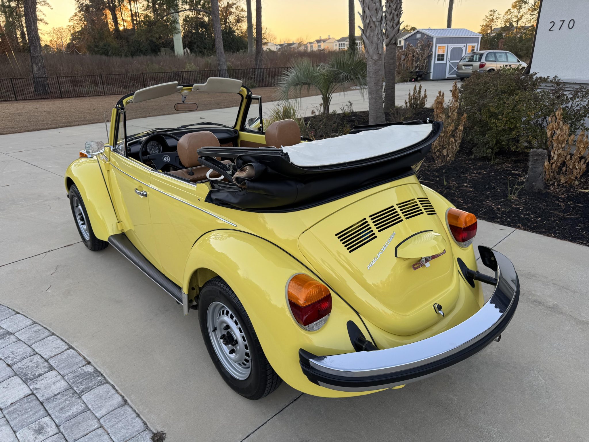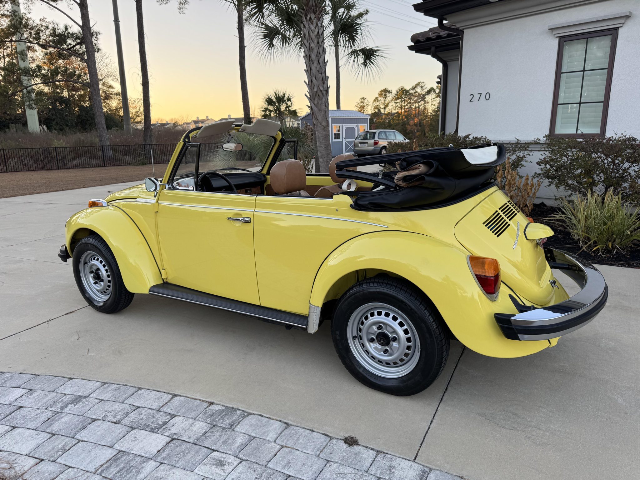 The Brazilian-style 15″ wheels are mounted with 165/80 Nexen SB-802 tires. The car was factory equipped with a MacPherson strut and coil spring front suspension in place of the standard Beetle’s torsion bar setup. Stopping power is provided by drum brakes at all four corners.