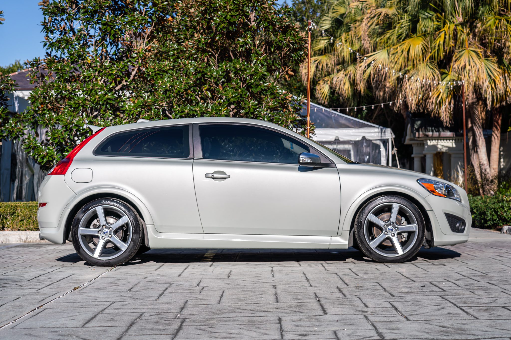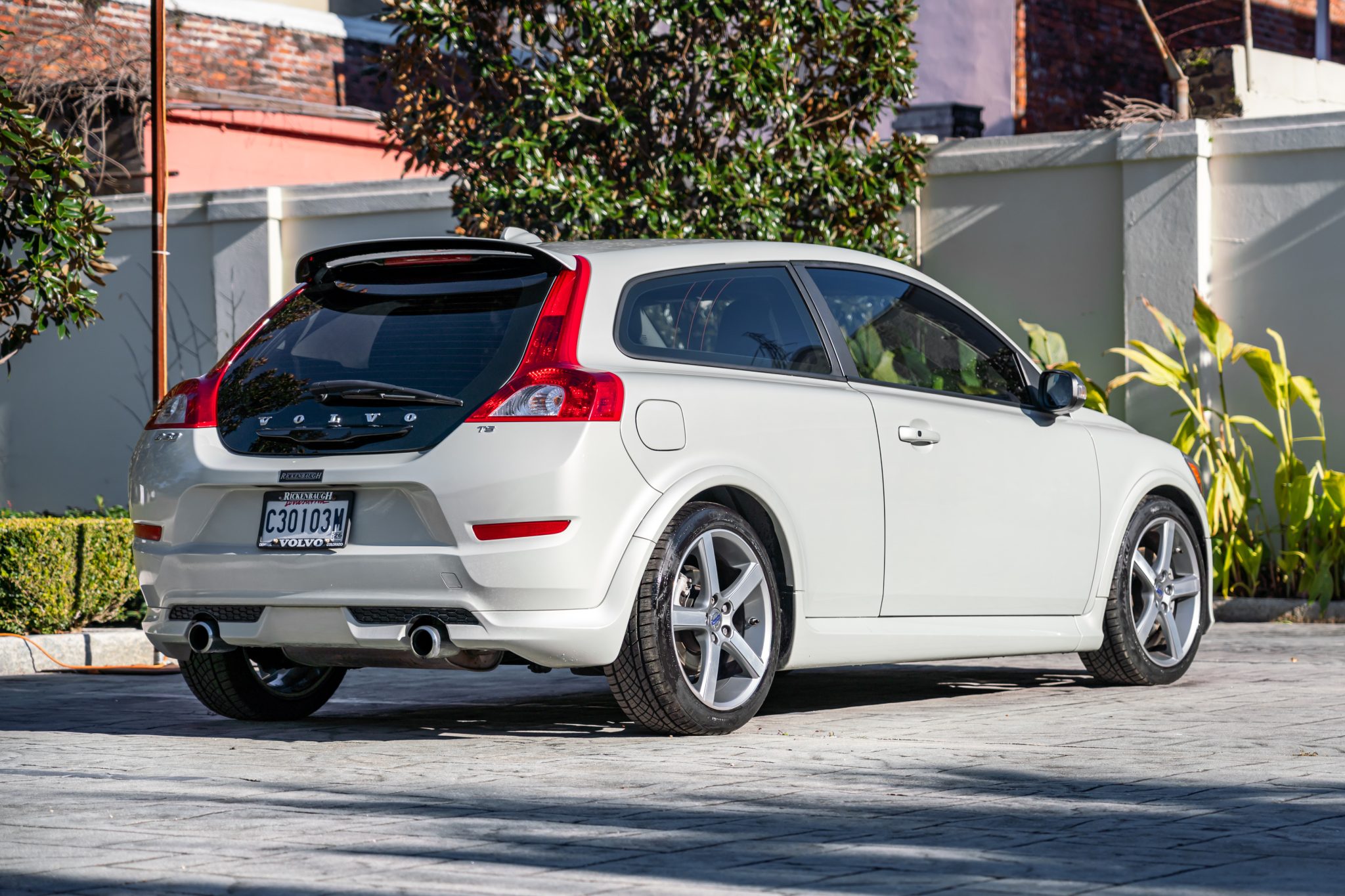 The 18″ Midir alloy wheels are mounted with Continental ExtremeContact tires. The car is equipped with an independent suspension and Dynamic Stability Traction Control (DSTC), and stopping power is provided by ventilated front and solid rear discs. R-Design examples also feature mono-tube dampers, stiffer suspension, and a quicker steering rack compared to other C30 models. The rear shock absorbers were replaced in June 2024.