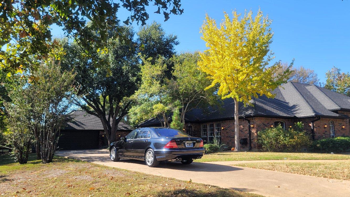 Silver-finished 18″ AMG double-spoke wheels are wrapped in 245/45 front and 265/40 rear Continental ExtremeContact DWS 06 Plus tires with production date codes from 2024. Braking is from four-wheel anti-lock discs with eight-piston front and four-piston rear AMG-branded calipers. The car rides on an Active Body Control (ABC) suspension, which was fitted with a replacement right-front strut in 2016. A replacement ABC hydraulic fluid filter was fitted in 2019, at which time the tire pressure monitoring system (TPMS) sensors were changed. The front lower ball joints were replaced in January 2021, and the brake fluid was bled in June 2024. A service invoice from January 2019 indicates that the ABC hydraulic pump is weak.