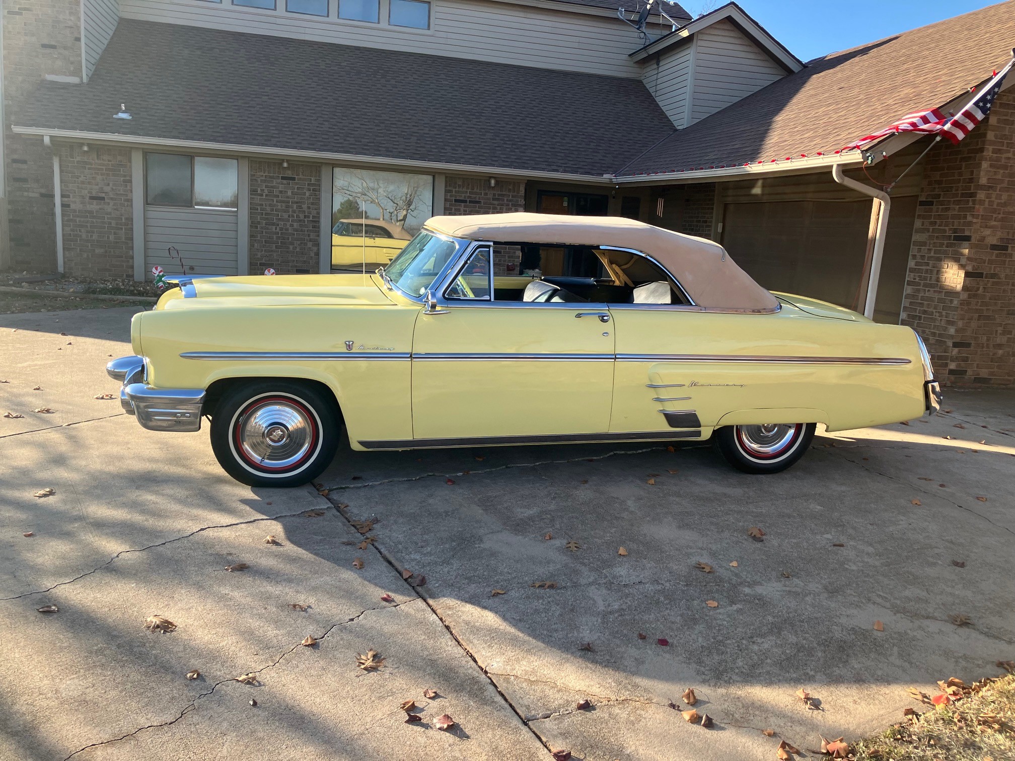 The red-finished 15″ steel wheels wear chrome covers and are mounted with 215/75 Cornell 1000 thin-whitewall tires. The car is equipped with independent front suspension with coil springs with a solid axle and leaf springs at the rear. Braking is handled by power-assisted drums at each corner.