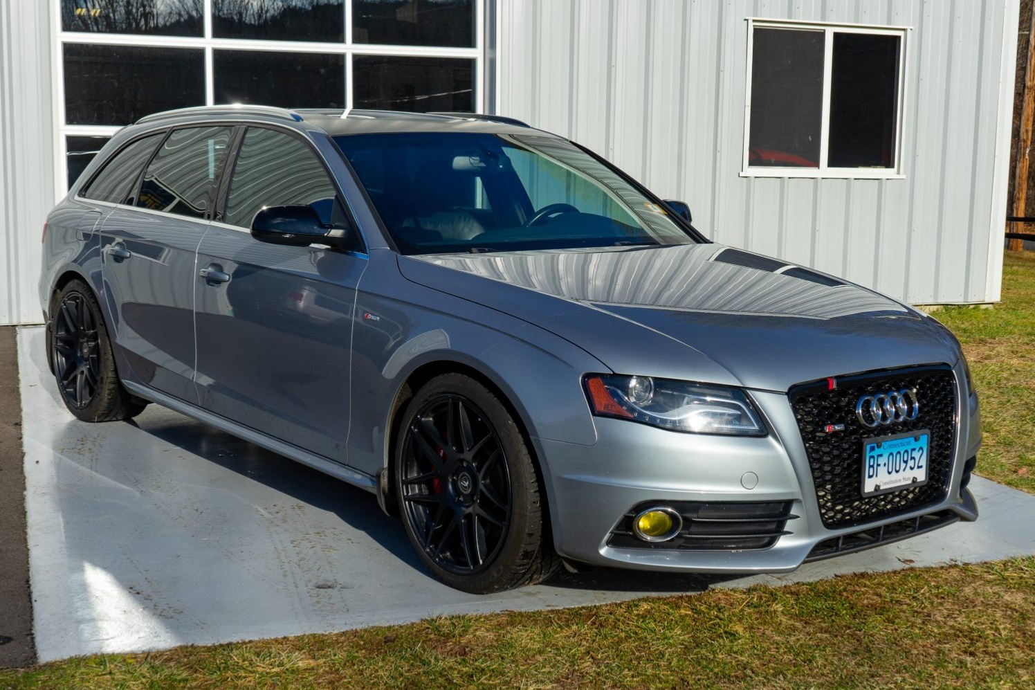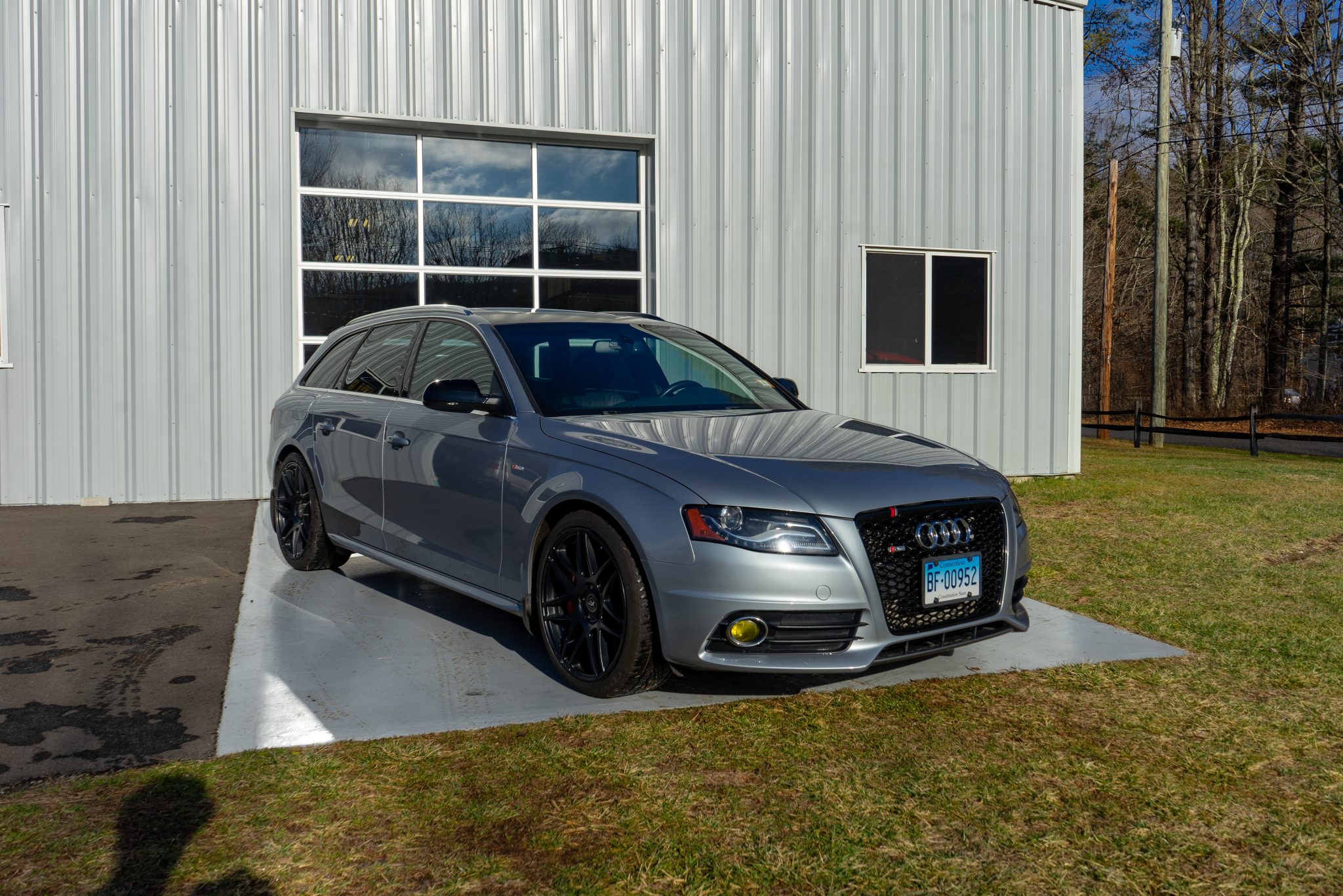 Black 19″ Forgestar wheels are mounted with 255/35 Continental ExtremeContact DWS 06 Plus tires. The car is equipped with Servotronic speed-sensitive power steering and Electronic Differential Lock traction control, and the S Line Package added a sport suspension. Braking is handled by cross-drilled and slotted discs at all four corners, and 345mm Brembo front calipers from a European-market Q5 TDI have been powder-coated red along with rear calipers from an S4. An RS5 master cylinder and ECS Tuning stainless-steel lines have also been fitted along with a Canyon Run front strut brace and a Eurocode Tuning rear sway bar.