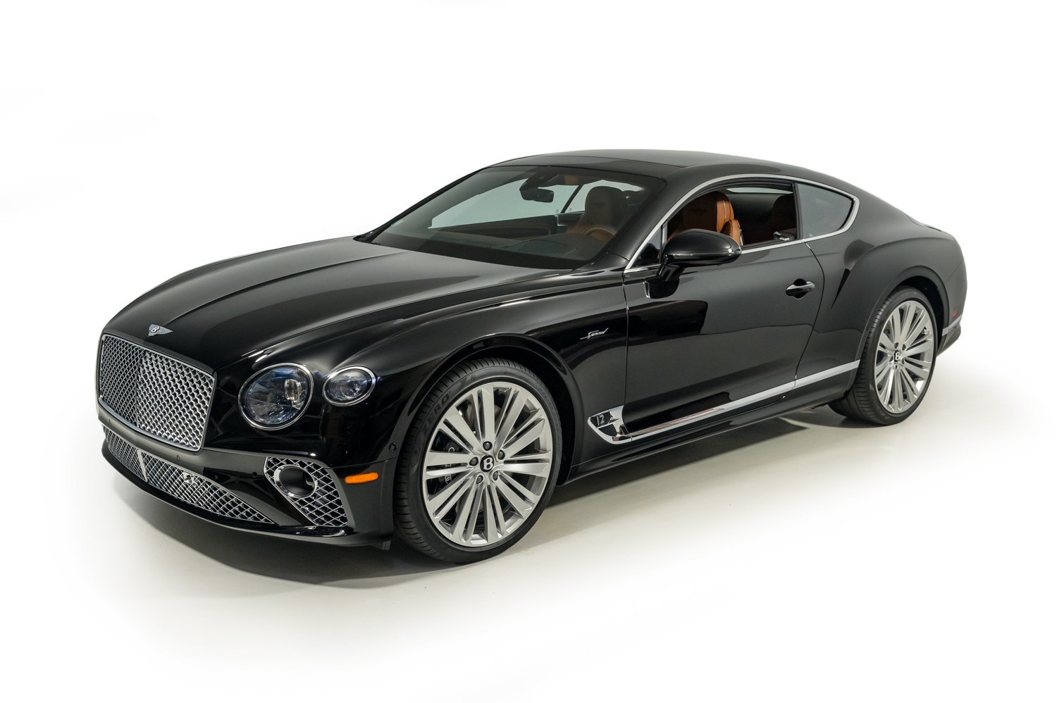 The 22″ Speed split 10-spoke alloy wheels are mounted with optional self-leveling Bentley-branded center caps as well as 275/35 front and 315/30 rear Pirelli P Zero tires. The car came factory-equipped with an electronically controlled torque-vectoring rear differential as well as an air suspension featuring Continuous Damping Control.