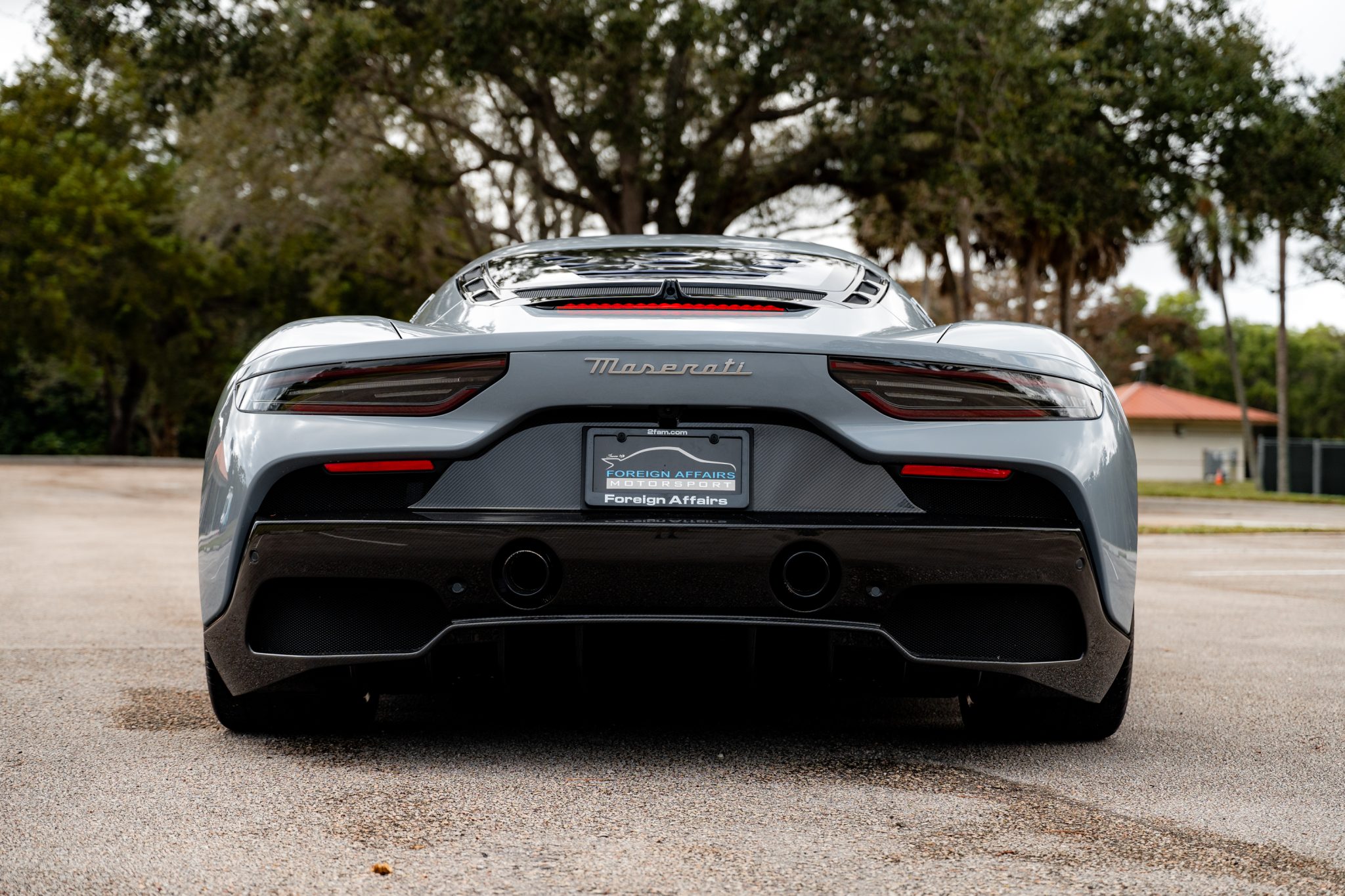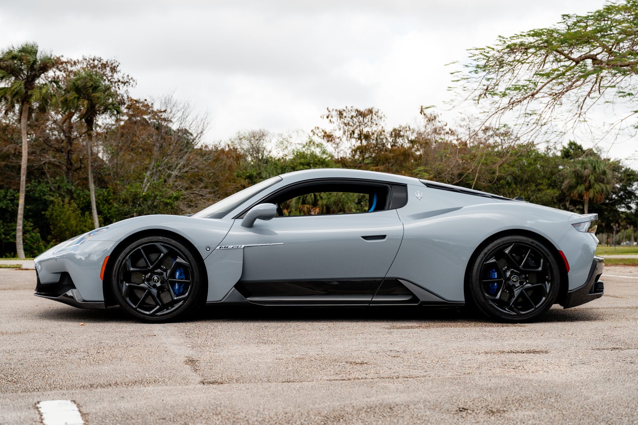 The 20″ Birdcage wheels are finished in Glossy Dark Miron and are mounted with Bridgestone Potenza Sport tires measuring 245/35 up front and 305/30 out back. The car was optioned with carbon-ceramic brakes with blue-finished calipers, and it is also equipped with launch control and a double-wishbone suspension that utilizes active dampers.