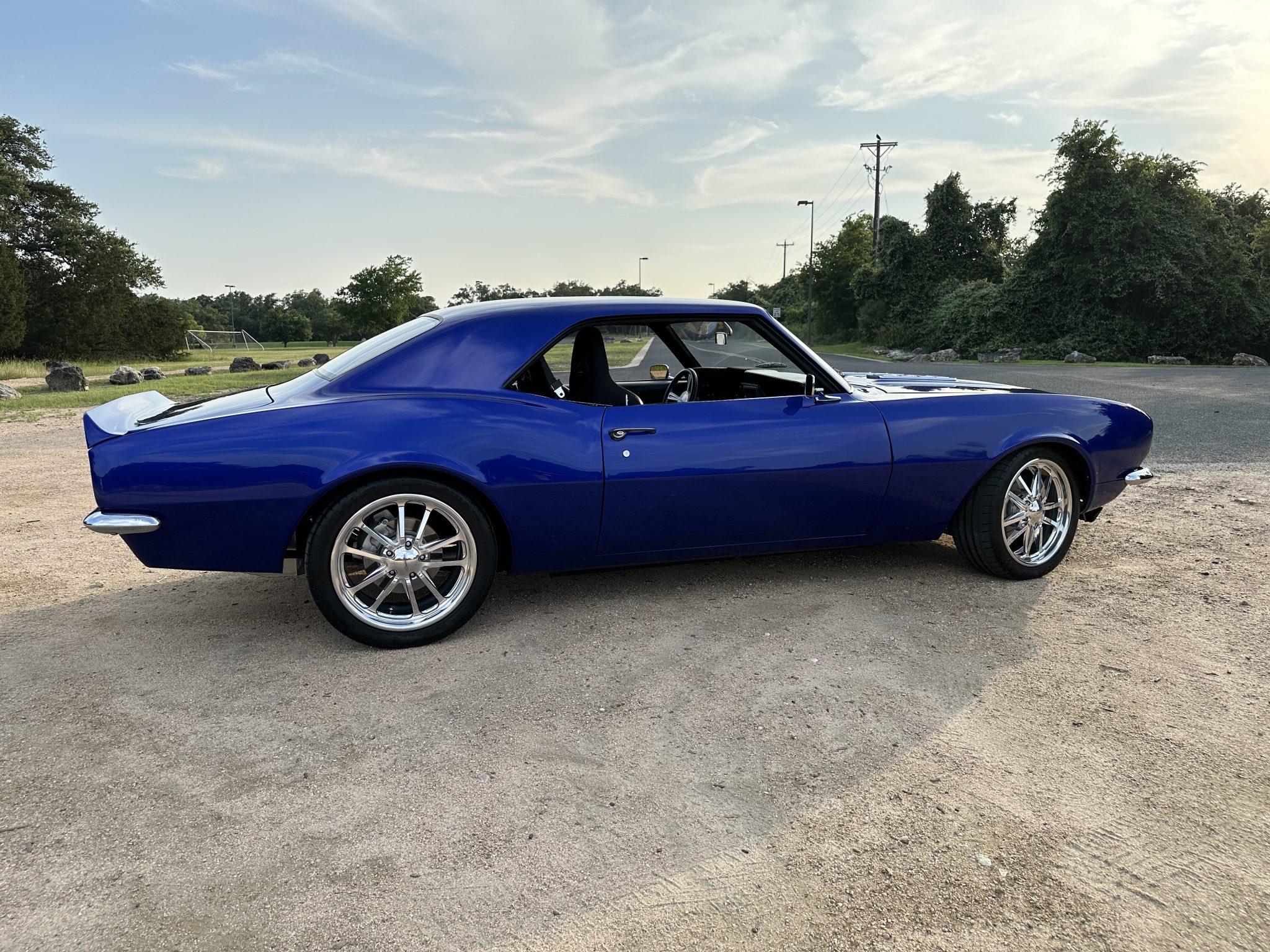 The 18″ Budnik billet wheels measure 8″ and 10″ wide and are mounted with 245/40 and 295/35 rear Michelin Pilot Super Sport tires. The car is equipped with Detroit Speed rear mini tubs, QA1 front coilovers, Detroit Speed rear drop leafs, tubular front control arms, IROC-Z quick-ratio power steering, and four-wheel disc brakes.