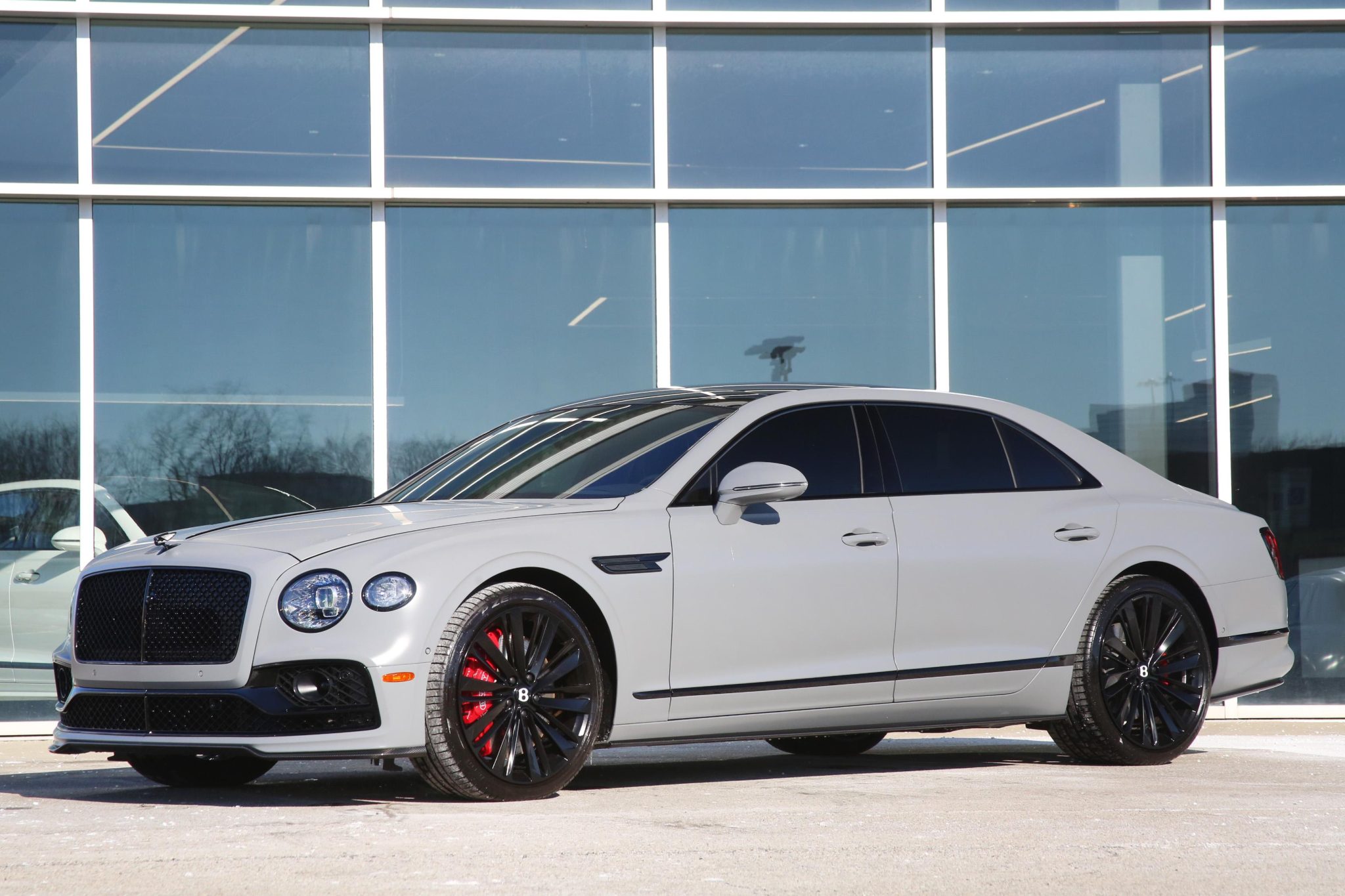 Black-finished 22″ Speed alloy wheels feature self-leveling center caps and are mounted with 275/30 front and 315/30 rear Pirelli P Zero tires. The car is equipped with Bentley Dynamic Ride and an air suspension with Continuous Damping Control (CDC). Stopping power is provided by four-wheel disc brakes with red-finished calipers.