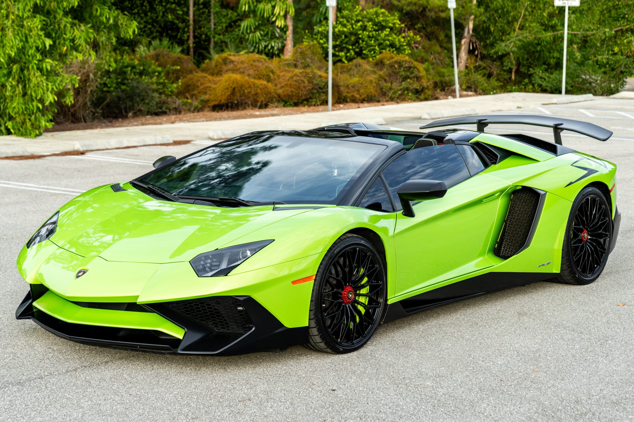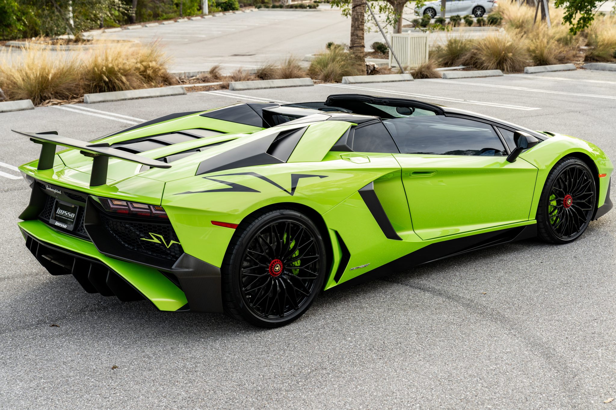 Other exterior details include xenon headlights, scissor doors, SV graphics, a rearview camera, and a quad-tip center-exit exhaust. The selling dealer adds that paint protection film is applied.