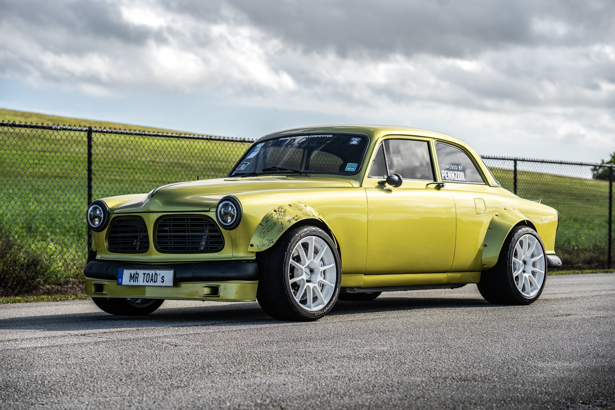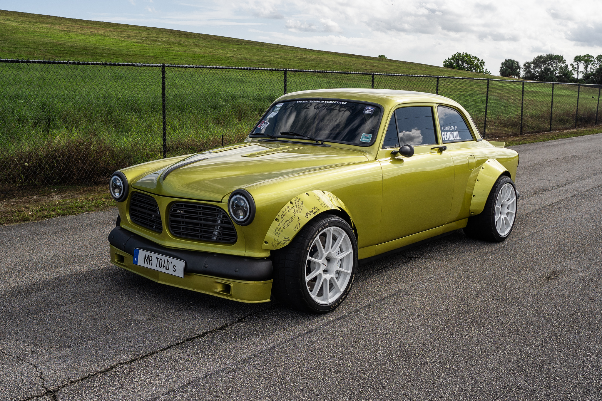 18″ monoblock Forgeline wheels are mounted with 275/35 and 315/30 BFGoodrich g-Force Rival tires. The chassis is from a 2013 Corvette Grand Sport, and Baer six-piston brake calipers have been added at all four corners.