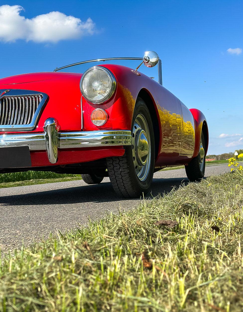 On the outside, the car is in very good condition. The bodywork has been repainted in its red color, it has only a few defects visible in the gallery. The seller specifies that the chromes have been redone and that the windshield and hood seals are new. Pictures of the undercarriage are available in the gallery.