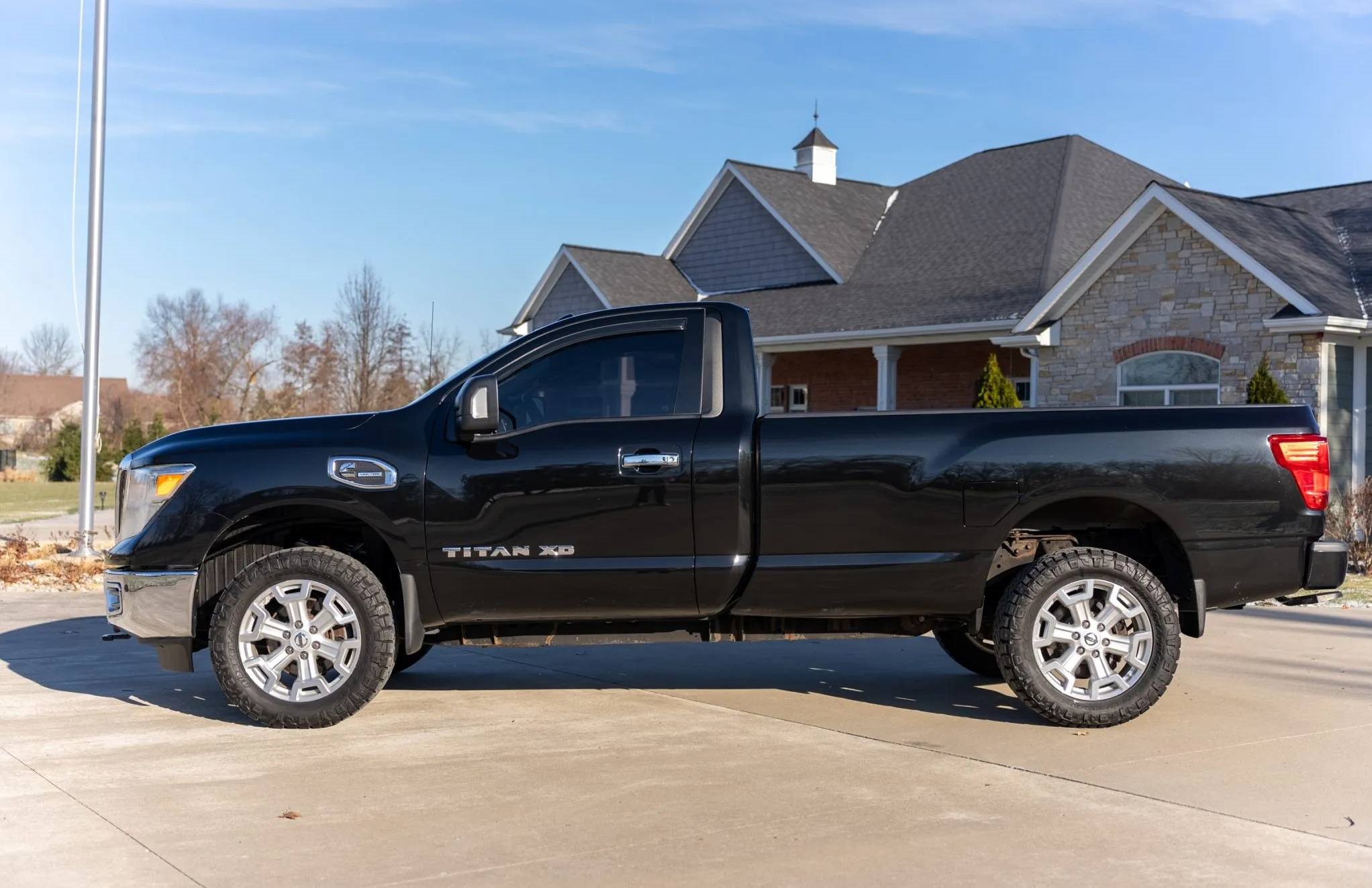 Optional 20″ alloy wheels are mounted with 265/60 Nitto Ridge Grappler tires showing 2023 date codes. The truck has been fitted with adjustable rear air shocks, and braking is provided by discs at all four corners.