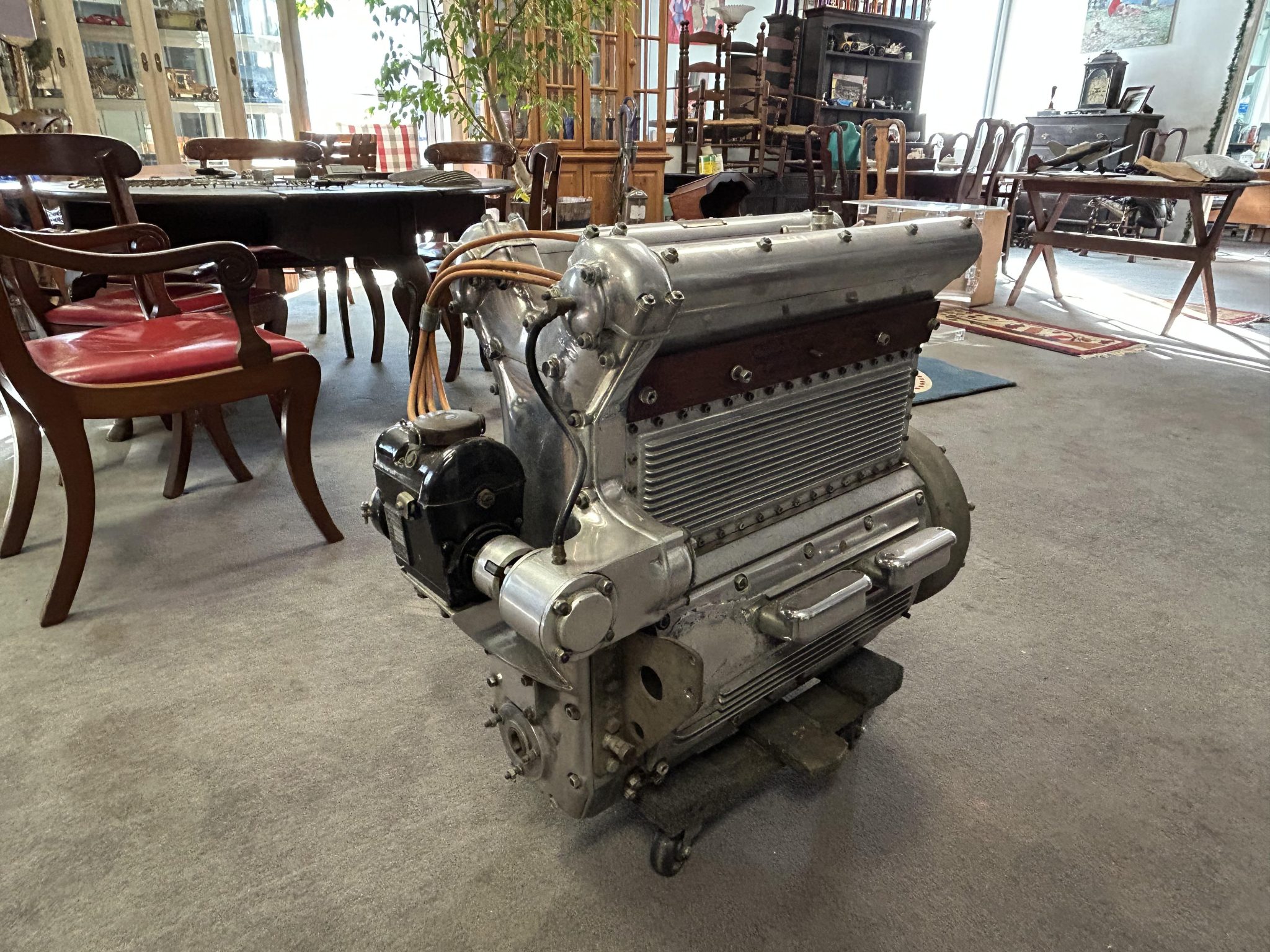 Wooden boards that block off the intake and exhaust ports bear handwritten instructions for carburetor adjustments and adding oil.