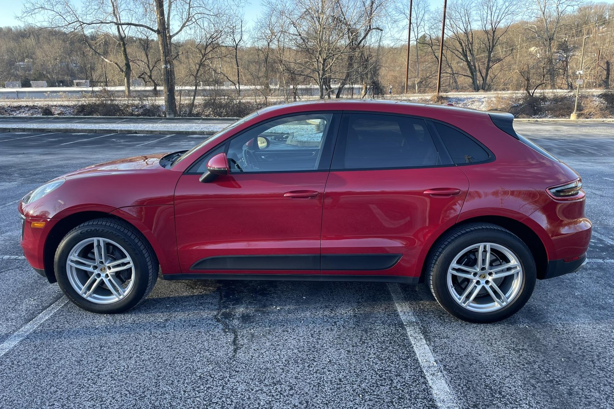 The 19″ Macan Turbo wheels are mounted with Continental tires. Stopping power is provided by four-wheel disc brakes with Porsche-branded calipers.