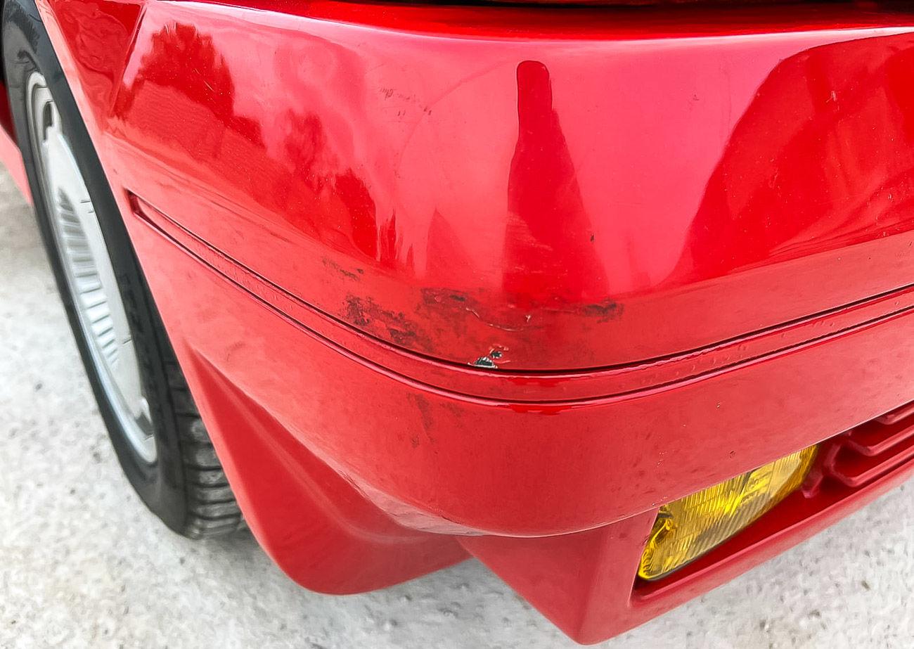 Externally, the car is in good condition. The red paintwork shows a few flaws which are visible in the gallery. The front bumper shows a trace of rubbing. Photos of the underbody are available in the gallery.