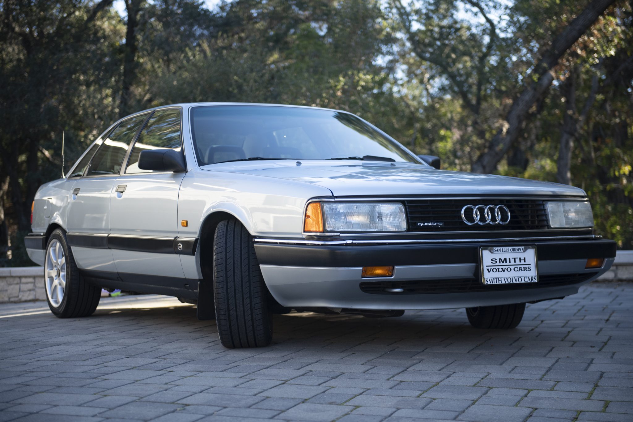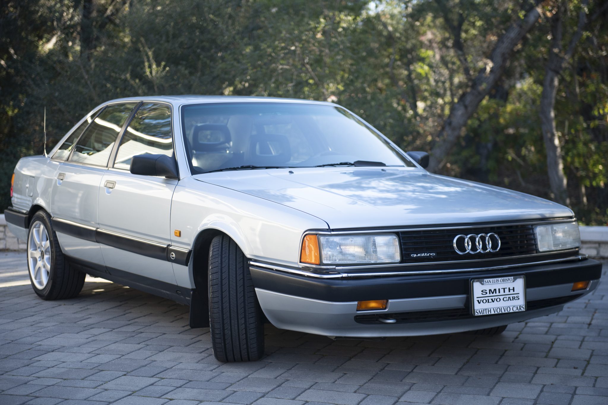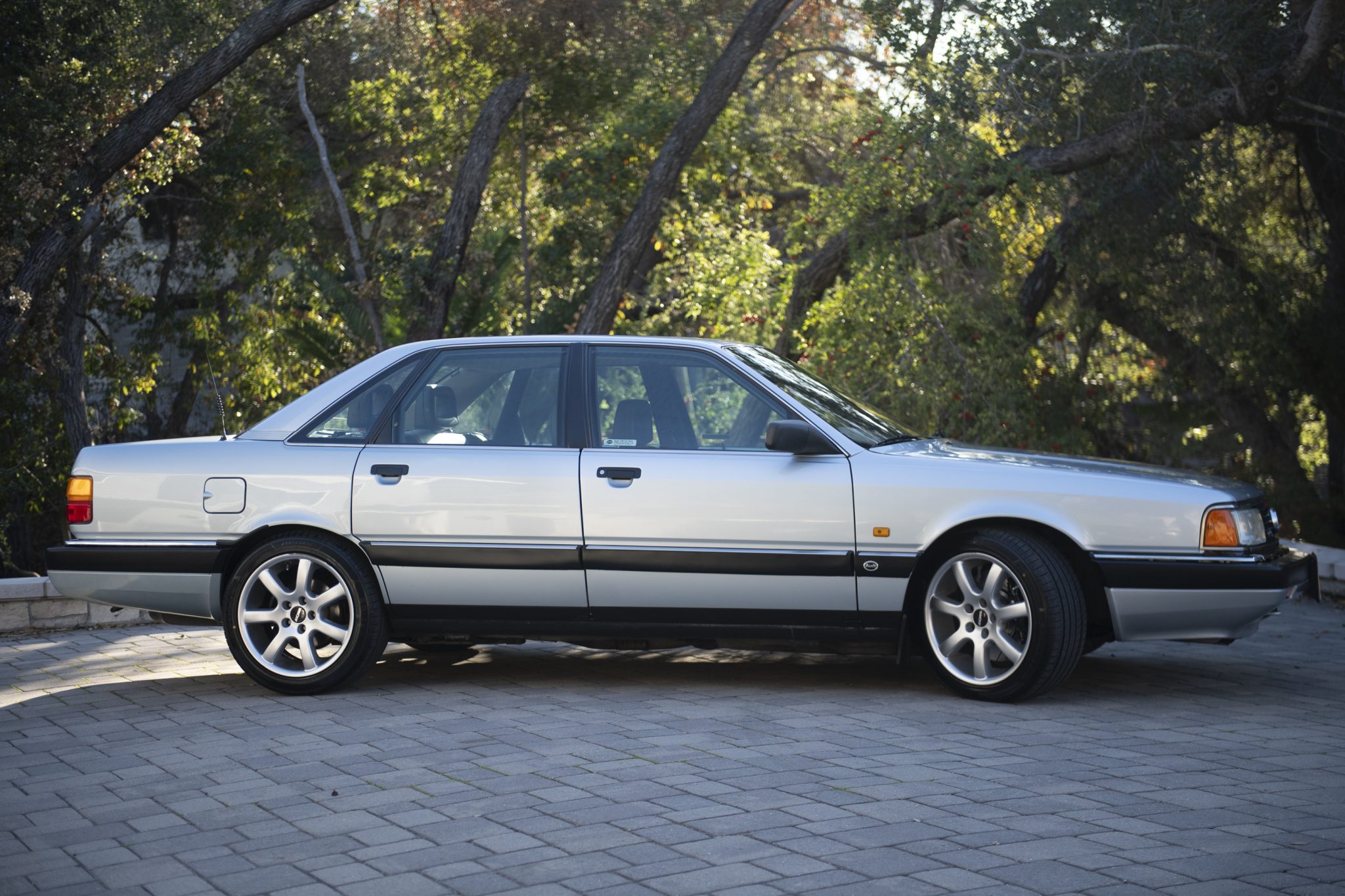 The 17×8.5″ Ronal R28 wheels are mounted with 235/45 Advanta ER-800 tires. H&R lowering springs and Koni dampers were installed in 1999. The car was equipped at the factory with “UFO” front brake rotors with internally mounted calipers, and a conversion to a conventional front setup with four-piston Brembo calipers over 330mm rotors was completed in 2001.