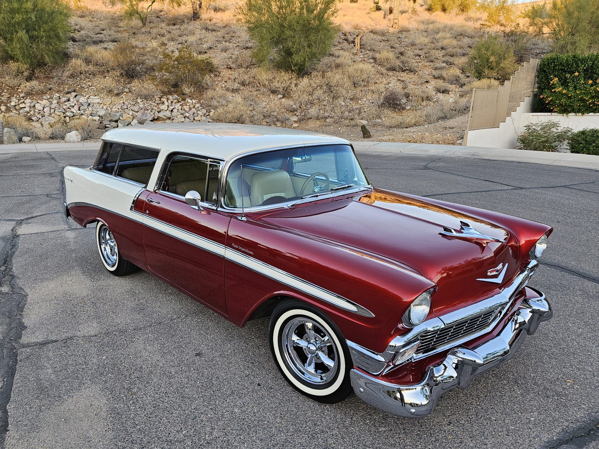 Chrome-finished five-spoke 15″ wheels are mounted with BFGoodrich Radial T/A tires measuring 225/70. Braking is provided by power-assisted front discs and rear drums, and the steering also is power assisted. The suspension has been rebuilt and utilizes a front anti-roll bar.