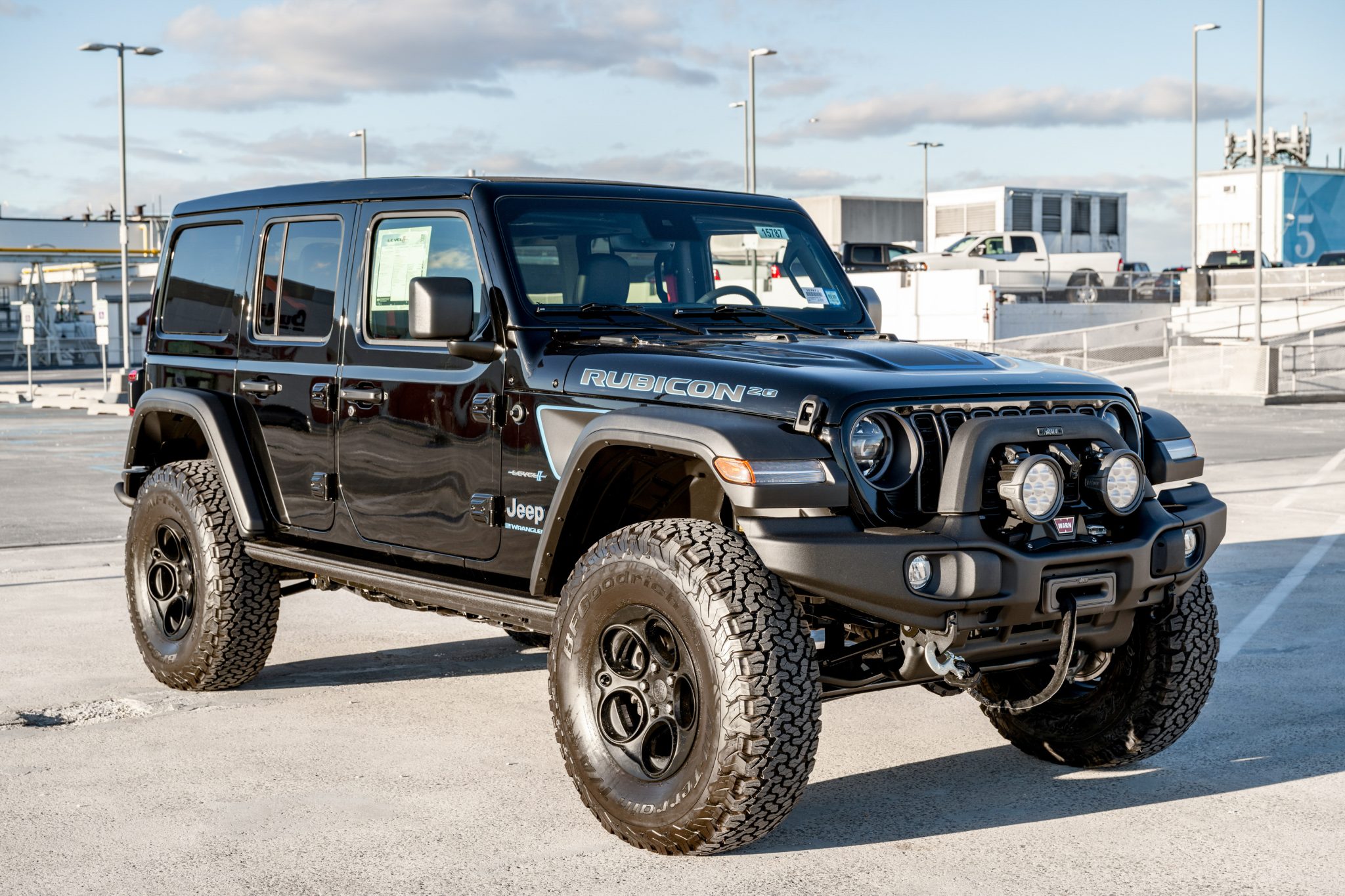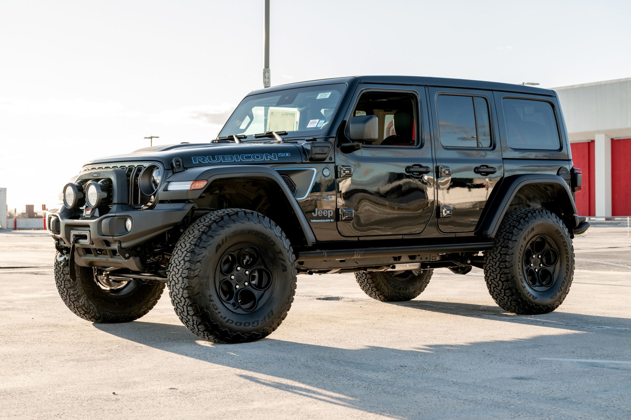 Black 17″ AEV wheels are mounted with BFGoodrich All-Terrain T/A KO2 tires. The truck is equipped with a lifted suspension along with an AEV steering stabilizer and shocks.