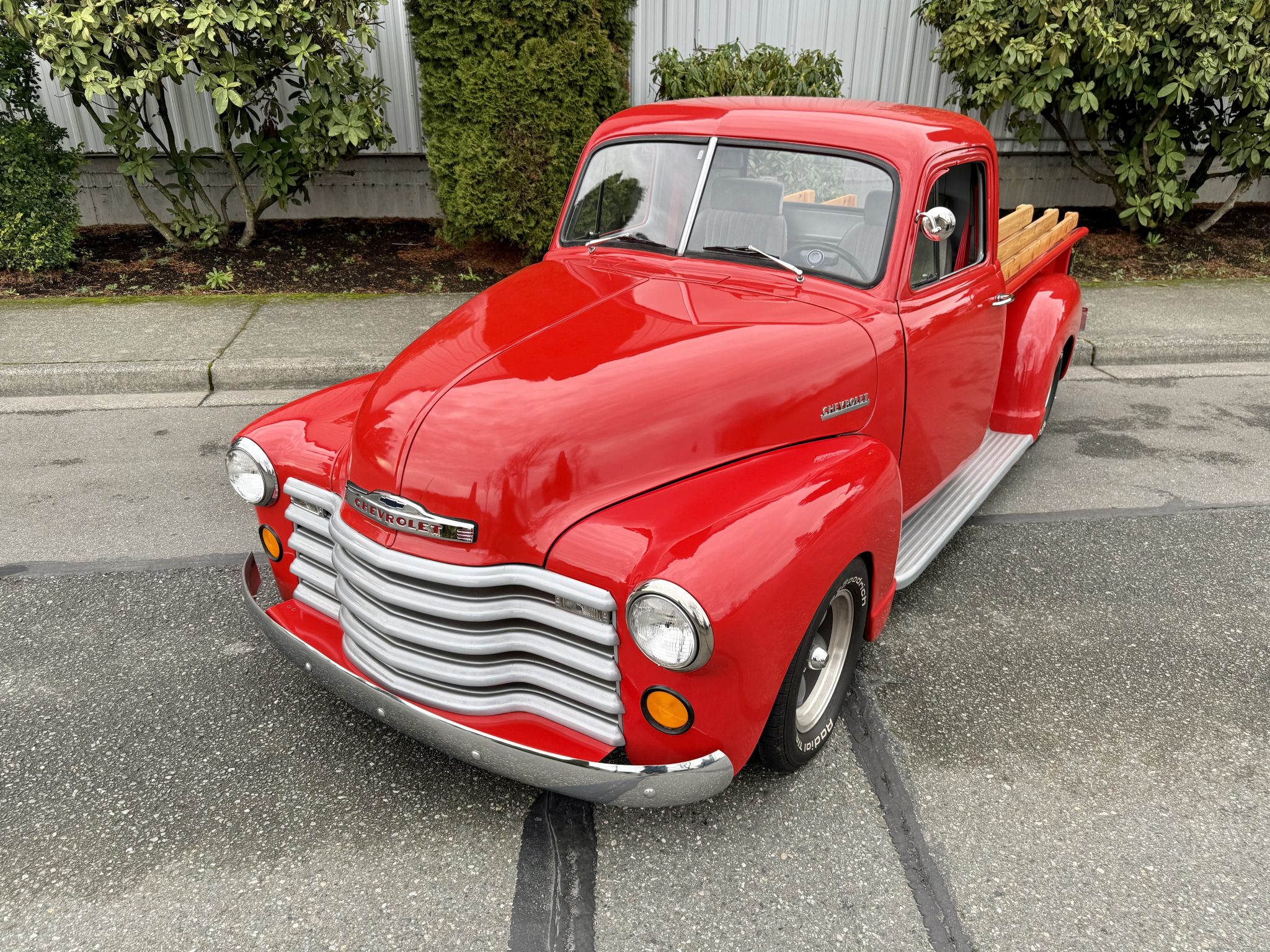 The 15″ American Racing Torq Thrust wheels are mounted with 235/60 BFGoodrich Radial T/A white letter tires. The truck has been sub-framed with an A-arm-style front suspension as well as power-steering, and power-assisted front disc brakes.