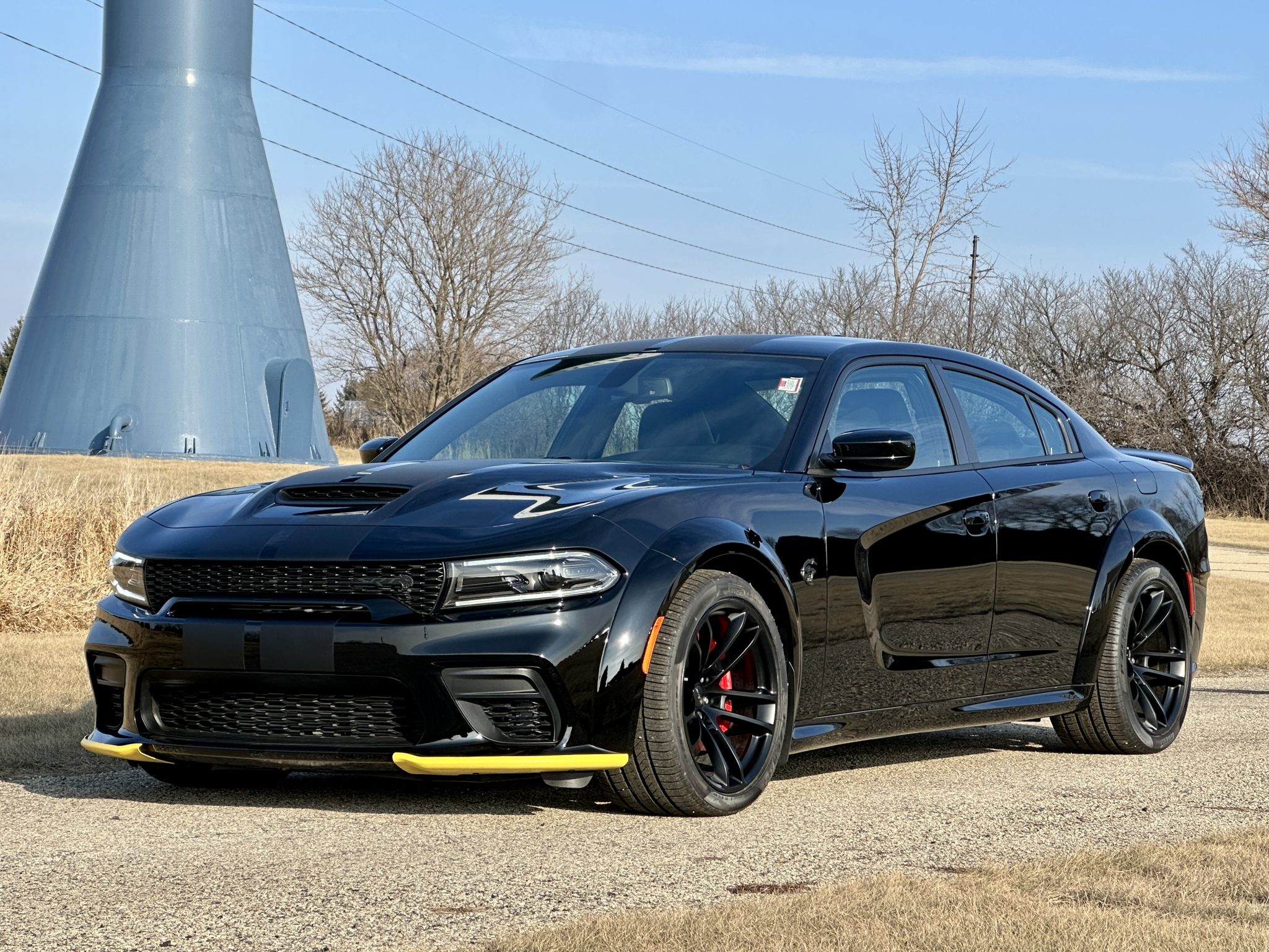 Black 20″ split five-spoke wheels are mounted with 305/35 Pirelli P Zero All Season tires. The four-wheel disc brake system features red-finished calipers and slotted front rotors, and the car is equipped with adaptive Bilstein dampers.