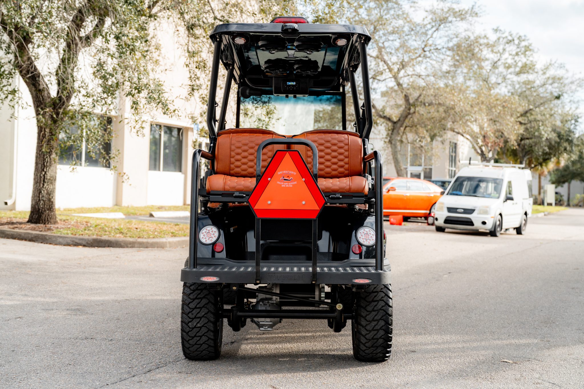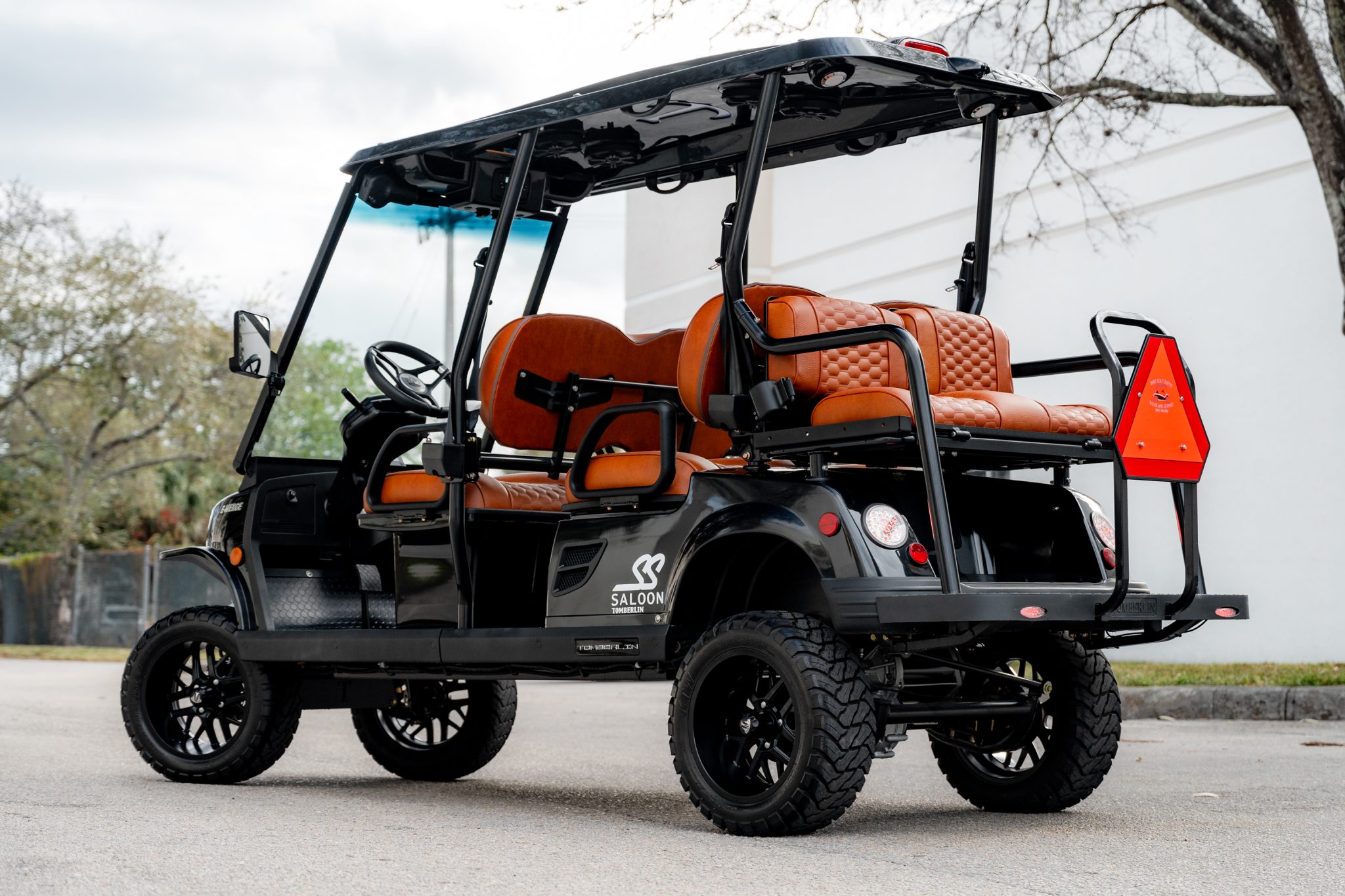 Black-finished 14″ multi-spoke alloy wheels wear 23×10.00 KTW Paramount M/T tires. The cart features a 6″ lifted double A-arm suspension with adjustable coilover shocks as well as four-wheel hydraulic brakes.