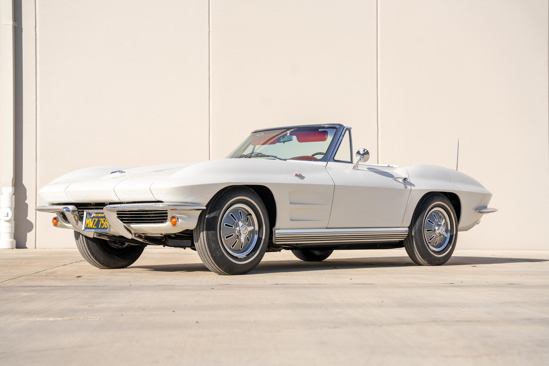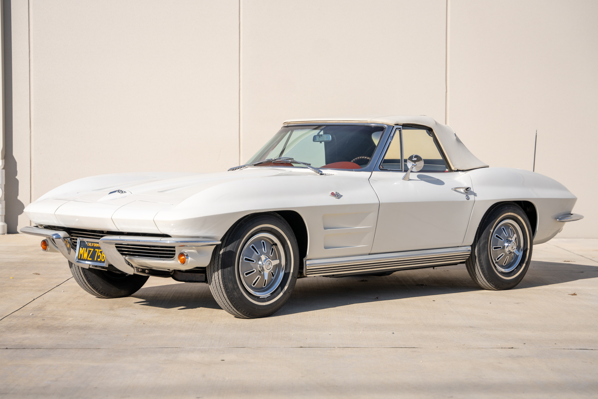 Silver-finished 15” steel wheels wear slotted covers and are mounted with Dunlop Gold Seal thin-whitewall tires. The C2 was the first Corvette manufactured with fully independent suspension, with upper and lower control arms at the front and a three-link setup with a transverse leaf spring at the rear. Braking is handled by four-wheel drums, and the brake fluid was serviced by the selling dealer.