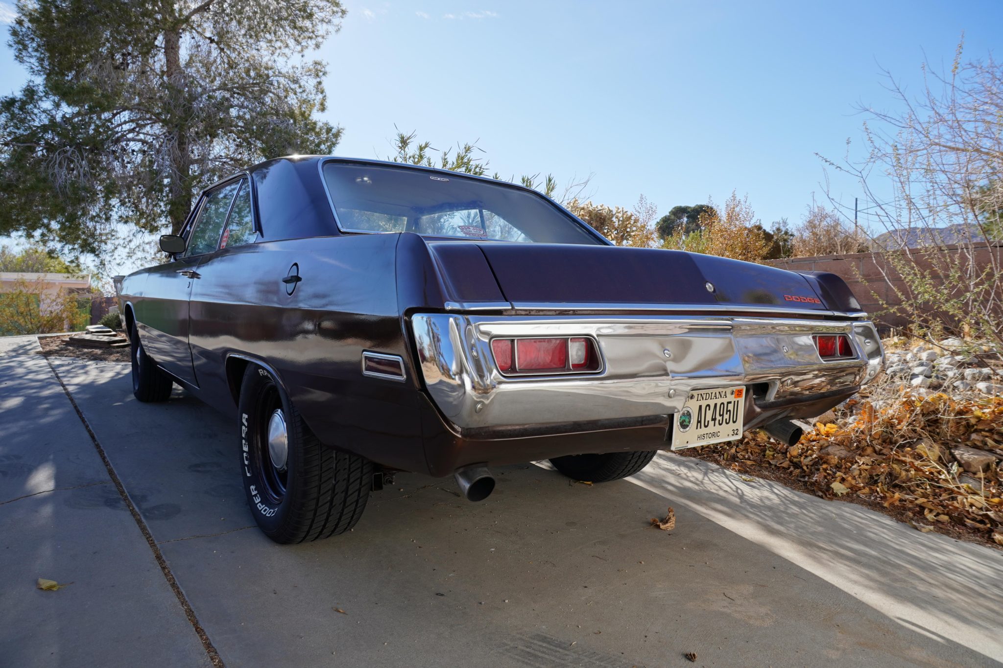 Staggered-diameter body-color steel wheels wear chrome hubcaps, and they are mounted with 215/70R14 Hankook Kinergy ST front tires and 275/60R15 Cooper Cobra Radial G/T rear rubber. Traction bars have been added to the rear leaf springs, and braking is provided by Scarebird Classic Brakes front discs, rear drums, and a DoctorDiff aluminum master cylinder.
