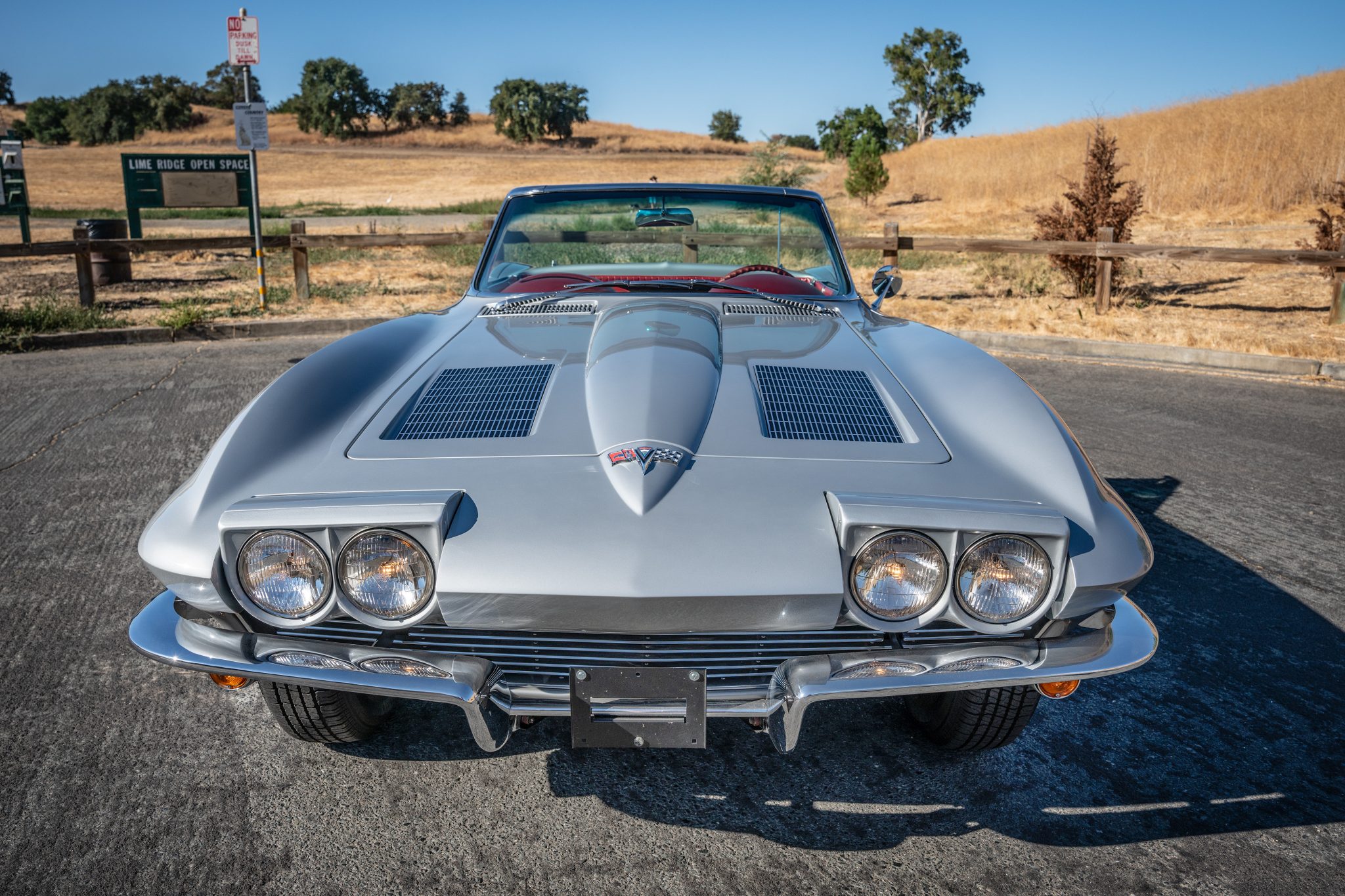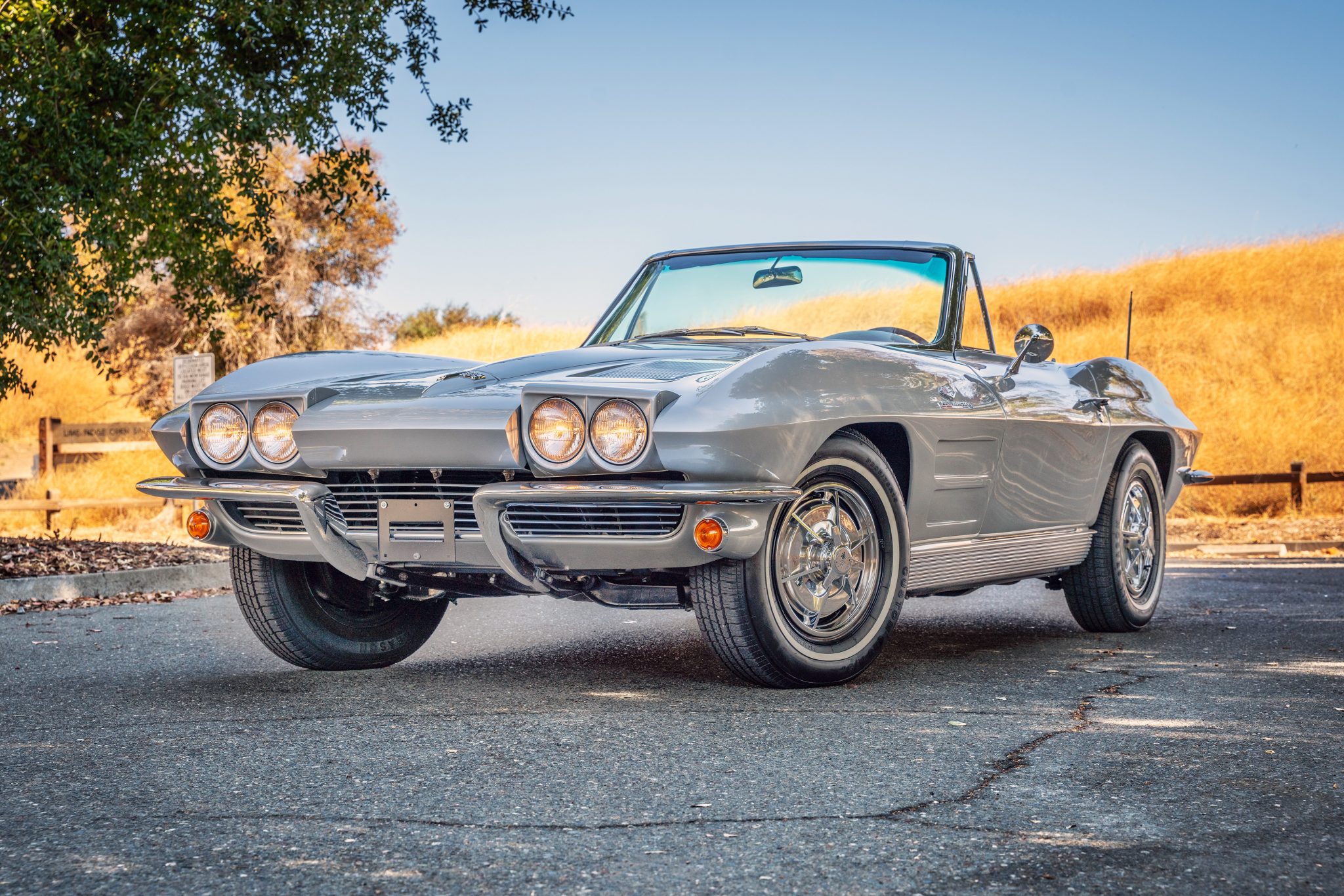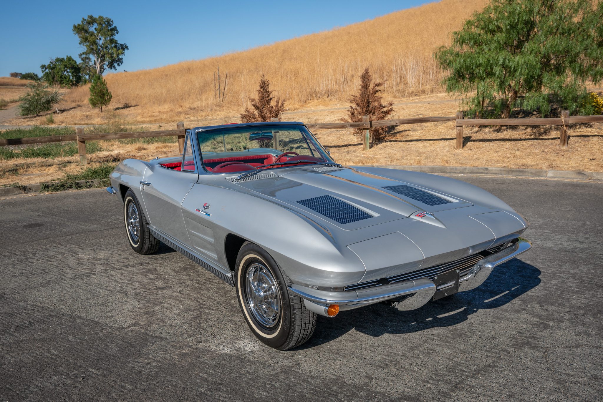 Steel 15” wheels feature three-eared knock-off spinner-style hubcaps and are wrapped in 205/75 Custom 428 A/S tires that were mounted in 2023. The C2 was the first Corvette to offer fully independent suspension, with upper and lower control arms at the front and a three-link setup with a transverse leaf spring at the rear. Braking is handled by four-wheel power-assisted drums, and the seller states the rear drums were serviced in 2023.