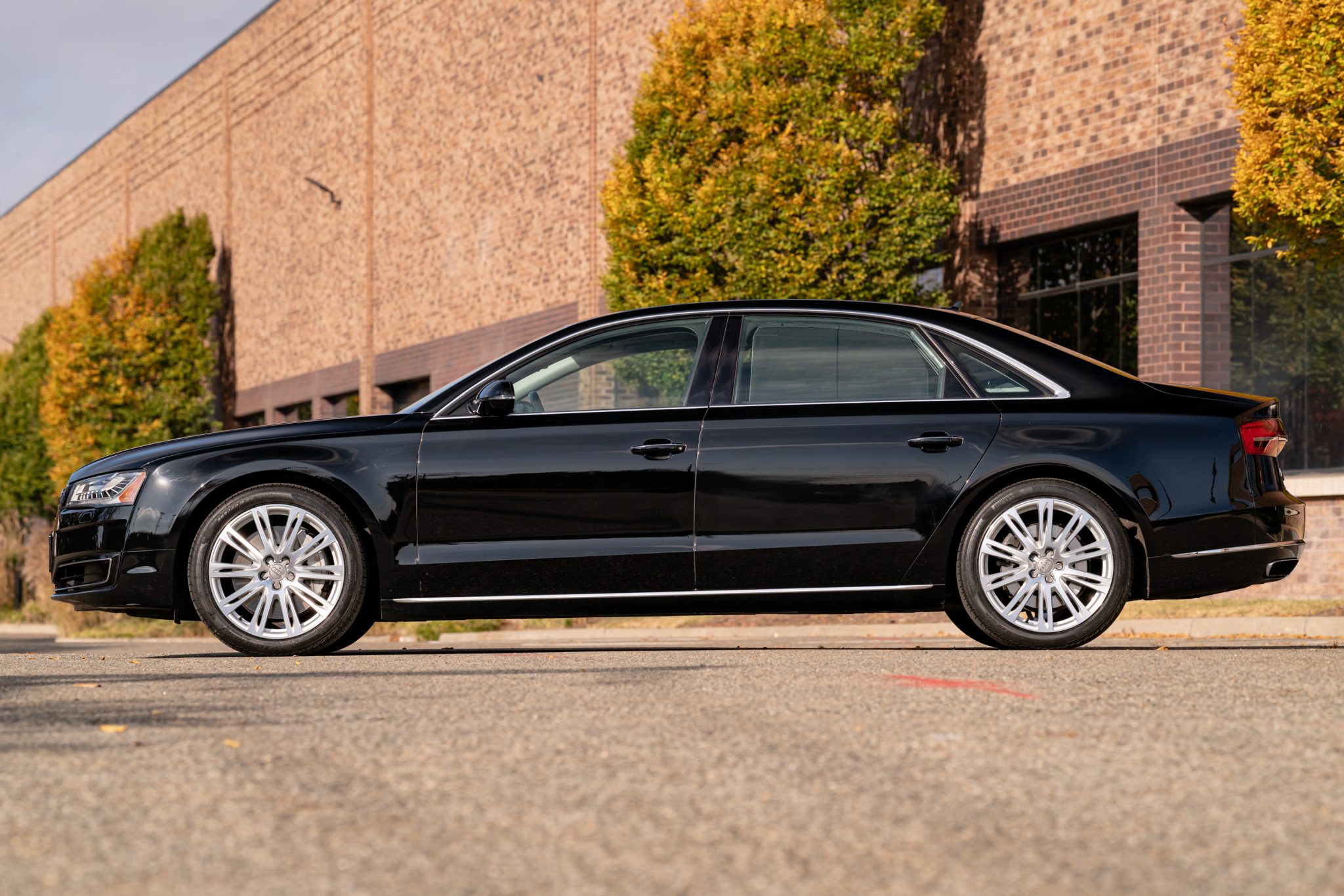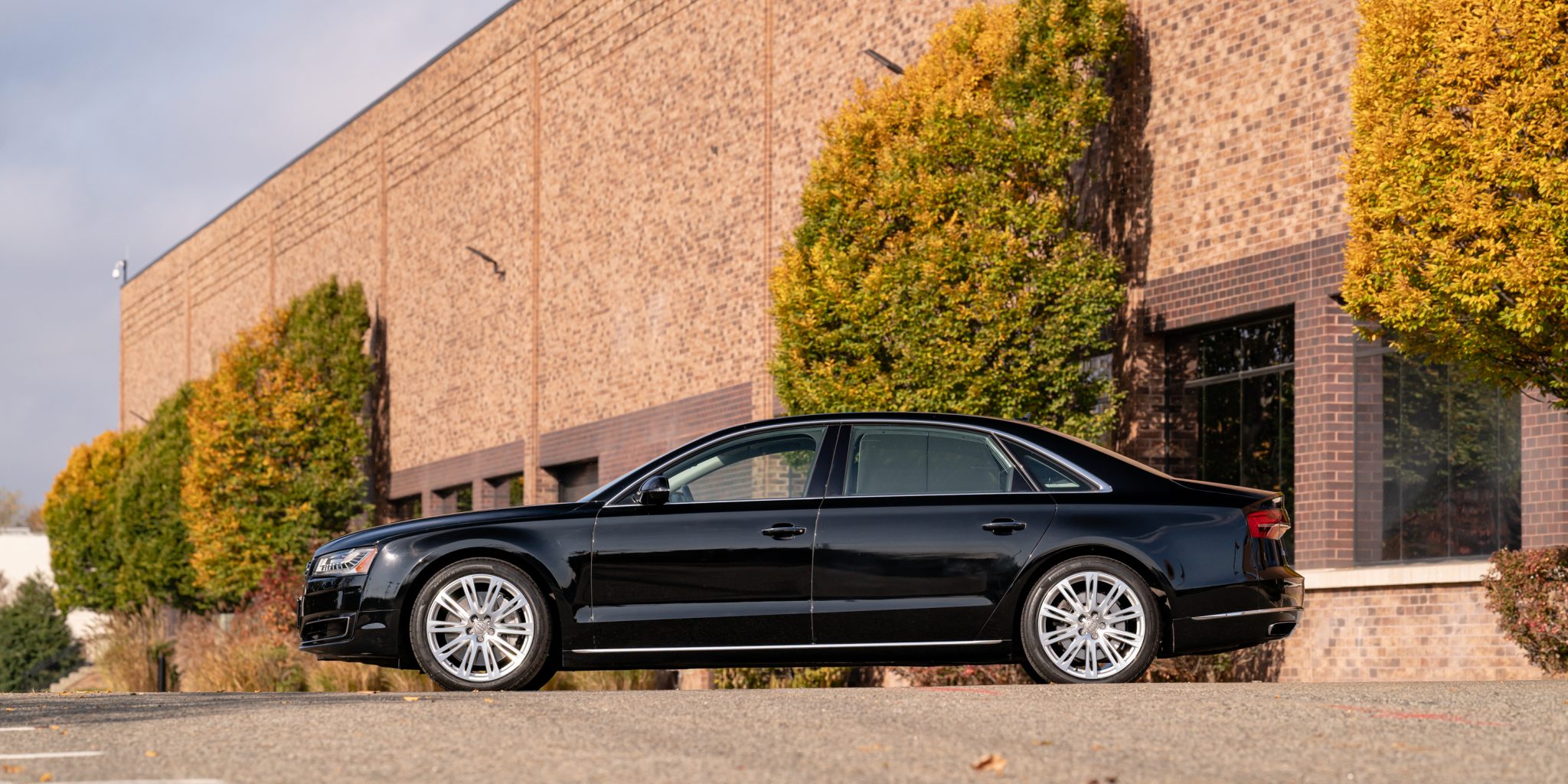 The 20″ 10-parallel-spoke alloy wheels are mounted with 265/40 Pirelli P Zero Nero tires, and braking is handled by 15.7″ front and 14″ rear ventilated discs. The car came factory equipped with an adaptive air suspension system. The brake pads and rotors were replaced in February 2023.