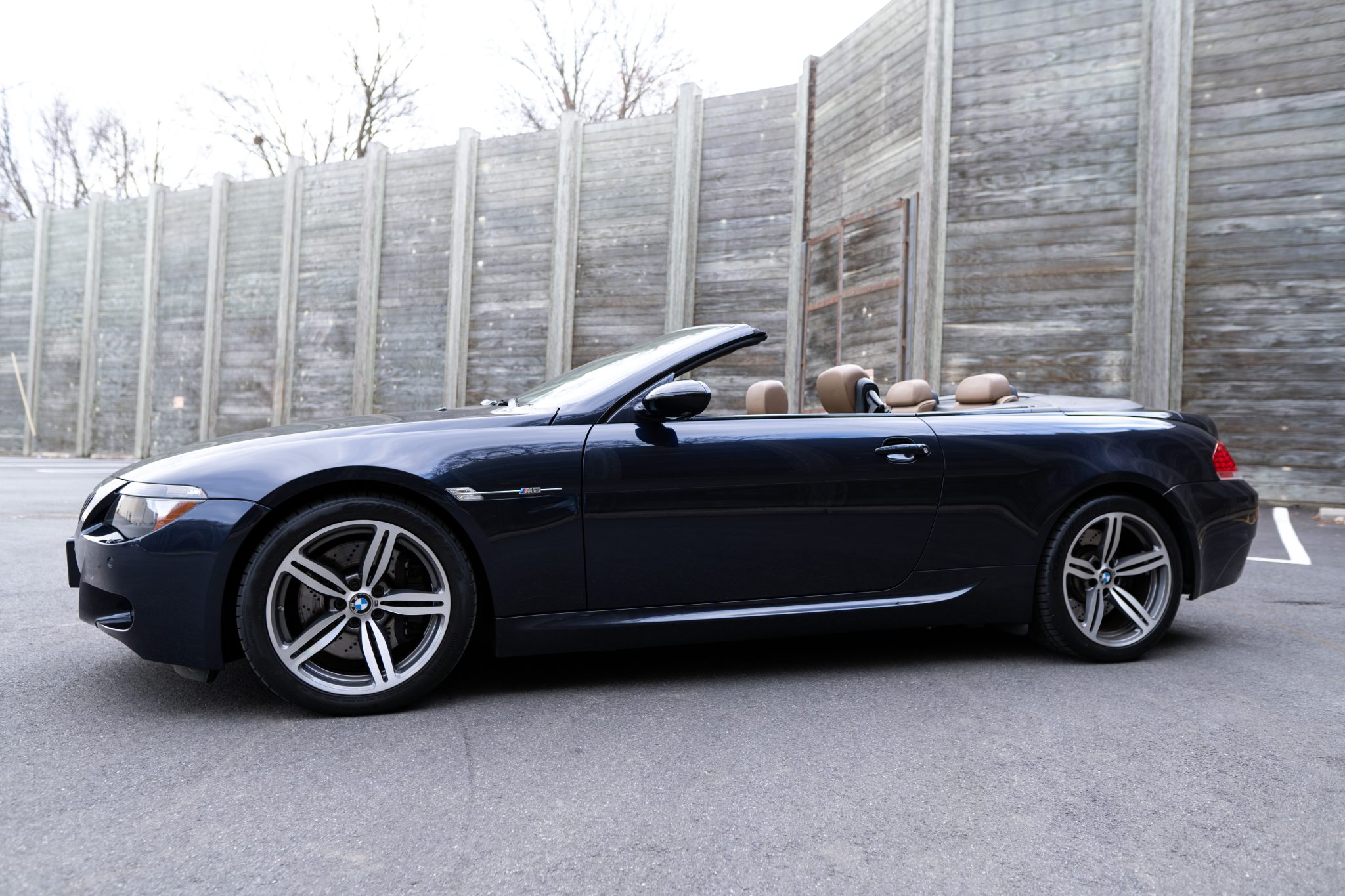 Staggered-width 19″ Style 167M alloy wheels are mounted with 255/40 front and 285/35 rear Continental ExtremeContact DWS06 Plus tires said to have been installed in preparation for the sale. The M6 featured revised suspension geometry and stiffer bushings front and rear when compared to the standard 6-Series and was also factory-equipped with Electronic Damping Control (EDC), Dynamic Stability Control (DSC), and M Dynamic Mode. Braking is handled by four-wheel vented and cross-drilled rotors measuring 14.7″ and 14.6″ front and rear, respectively.