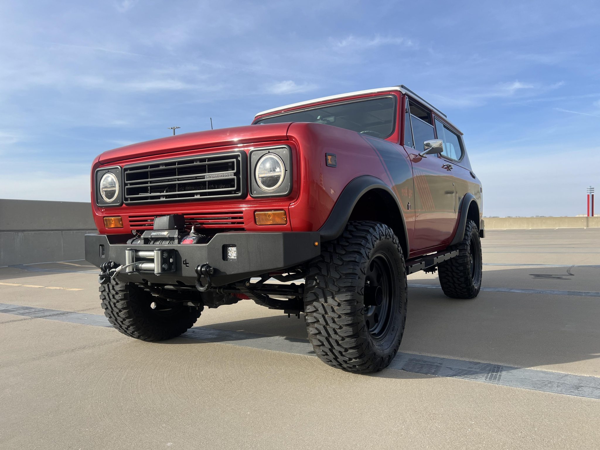 The 17” American Racing wheels are mounted with 33″ Haida Mud Champ HD868 tires. The truck is equipped with manually locking front hubs, power steering, a suspension lift, and front disc brakes.