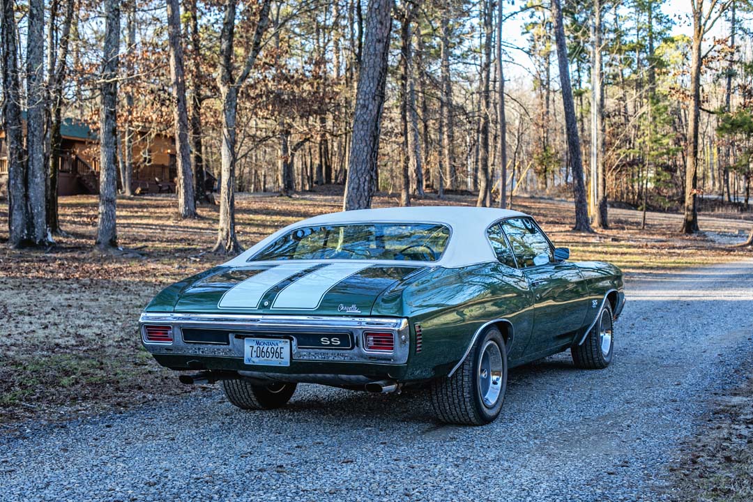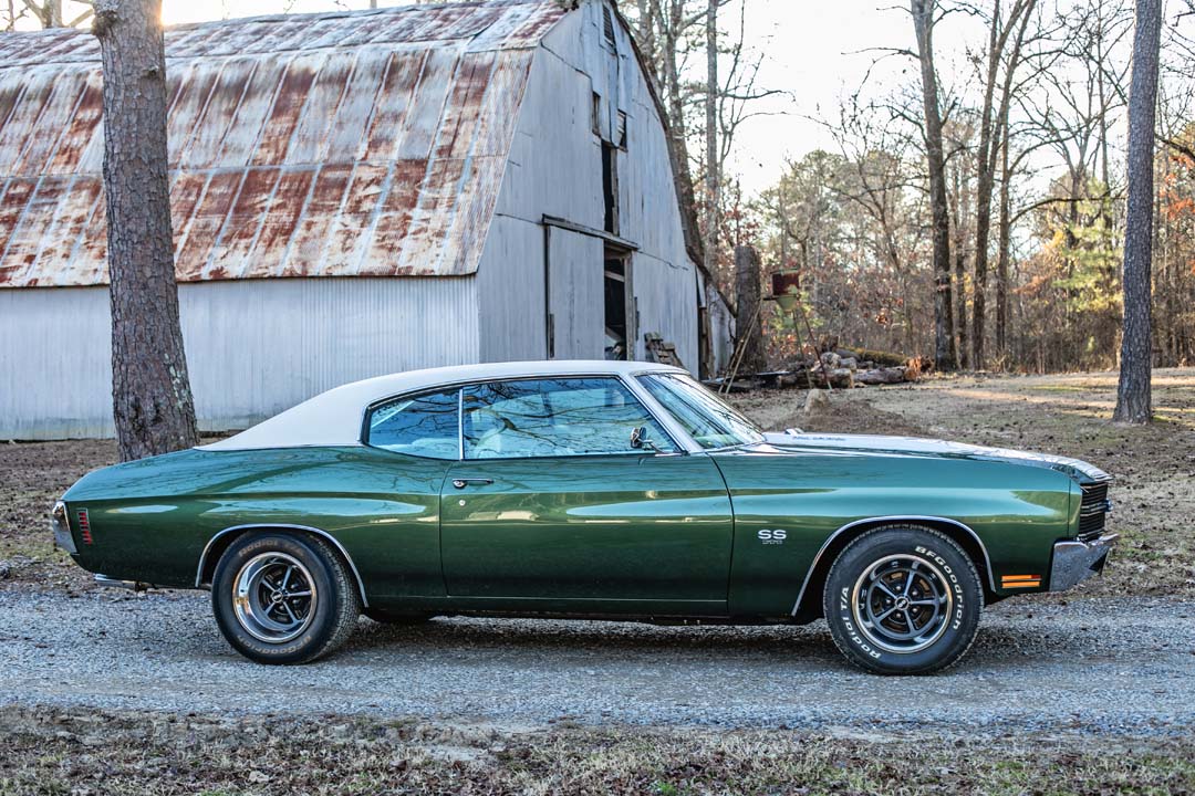 The chrome-accented 15″ SS wheels are mounted with 245/60 front and 295/50 rear BFGoodrich Radial T/A tires. Braking is handled by power-assisted front discs and rear drums.