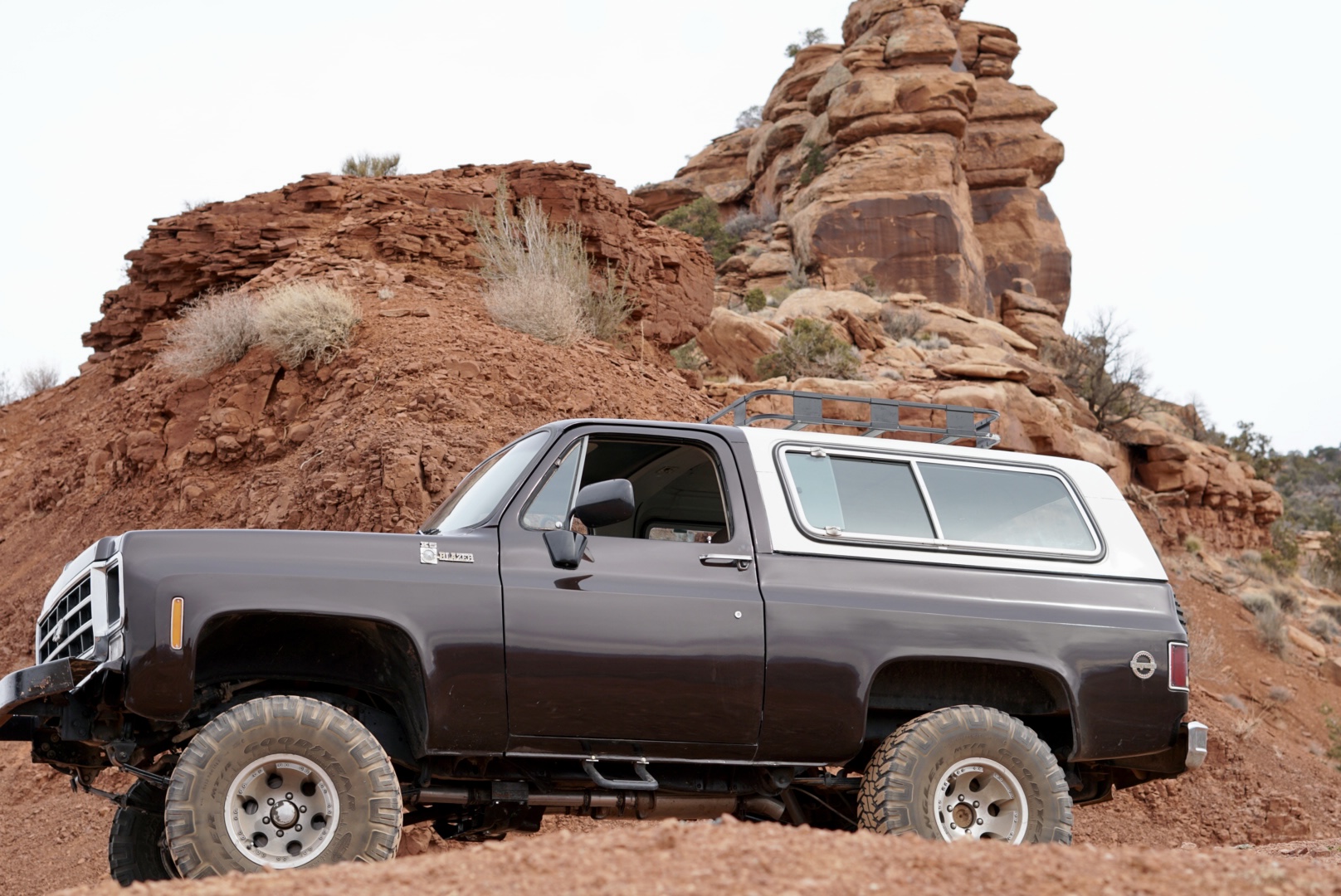 The 15″ alloy wheels are mounted with Goodyear Wrangler tires. Stopping power is provided by front discs and rear drums. The truck came equipped from the factory with power steering.